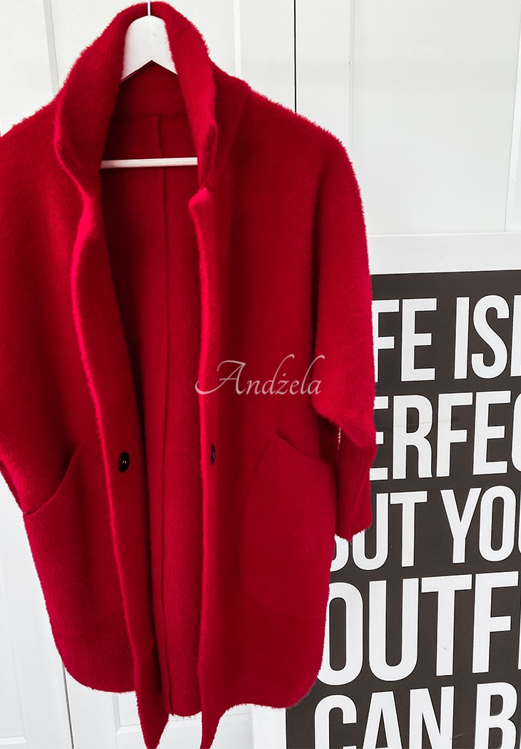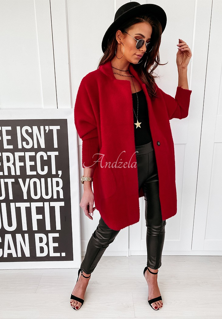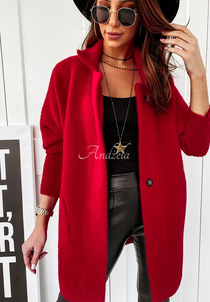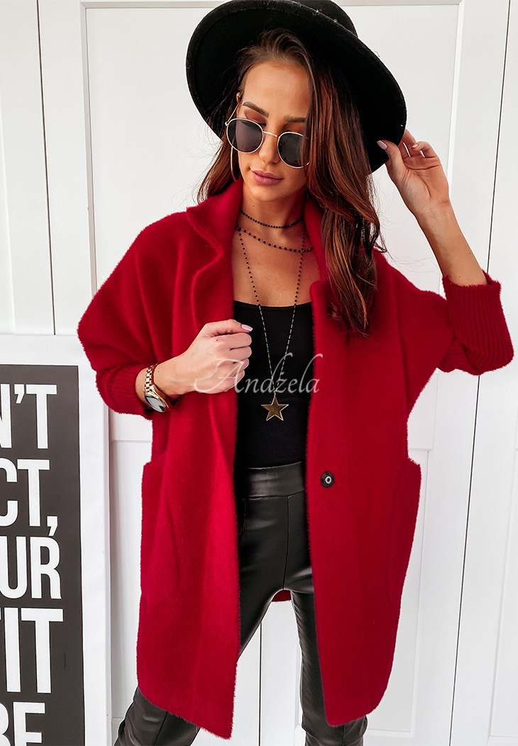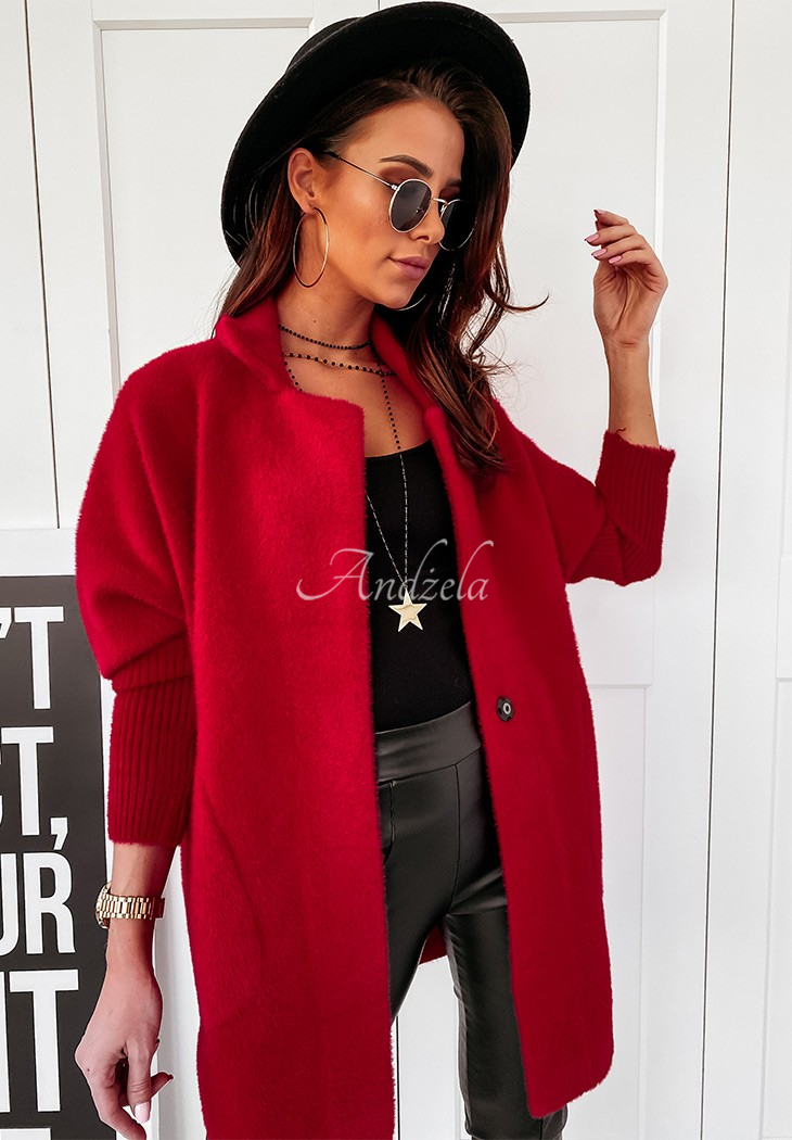 Kabát vyrobený z veľmi módneho a mimoriadne príjemného materiálu. Teplý, ideálny na jar/jeseň. Oversize, voľný strih hodiaci sa pre elegantné, casual ako aj športové štylizácie. Zapínaný na skryté cvoky, rukávy sú zakončené širokými patentmi. Má golier, po bokoch dve hlboké vrecká. Dostupný v niekoľkých farbách.
