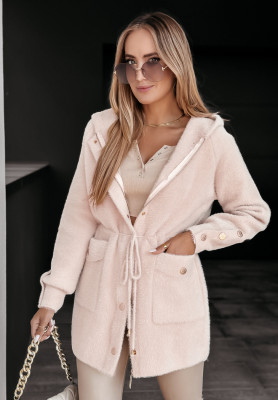 Kabát alpaka s kapucňou Heavenly svetlobéžový