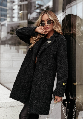 Kabát so vzorom rybia kosť s gombíkmi Her Way čierne