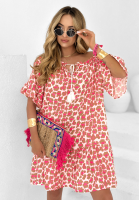 Mušelínové šaty s leopardím vzorom Blue Feeling béžovo-ružové