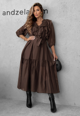 Šaty maxi s volánmi Still Miss You čokoládová