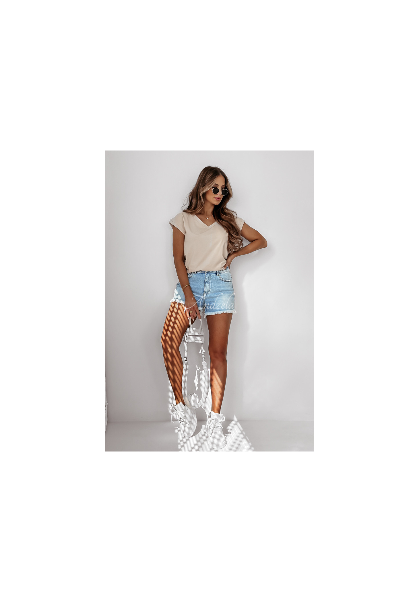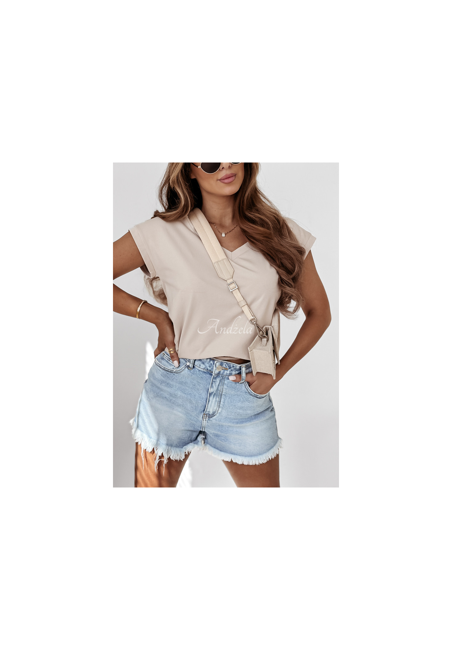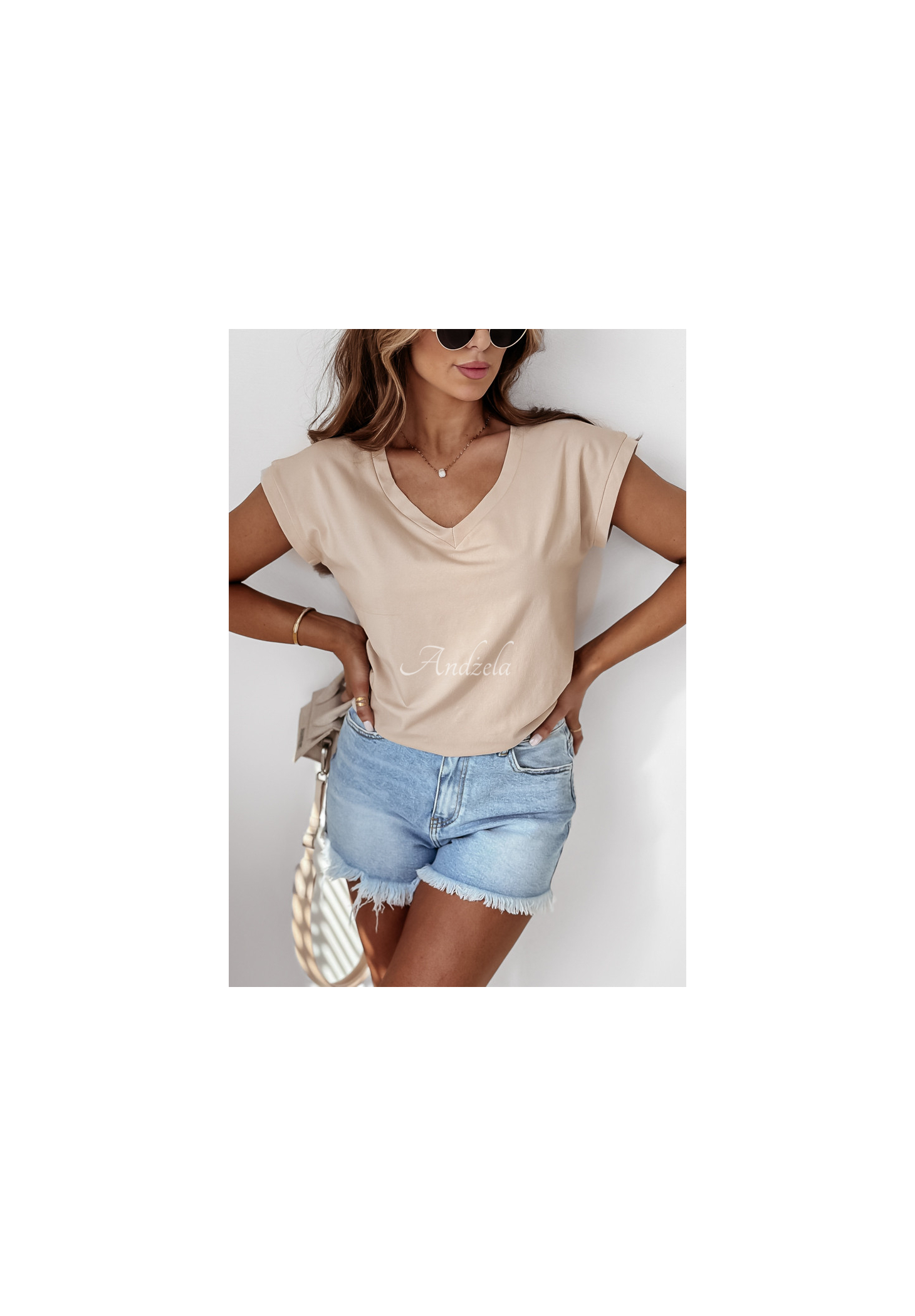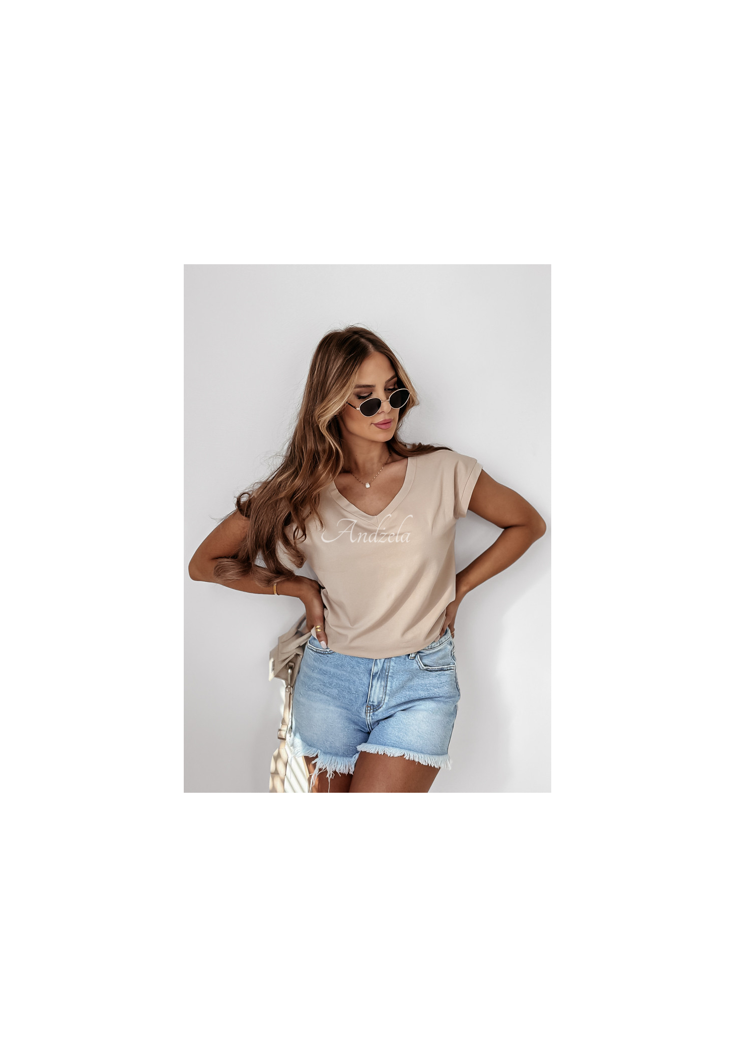 Klasické tričko s výstrihom v tvare písmena V je základ, ktorý skvelé poslúži každý deň. Vynikajúco sa prezentuje v voľnej verzií skombinovaný s džínsami. Výrobok vysokej kvality, dostupný je v niekoľkých farebných verziách. Projekt od ANDŻELA!