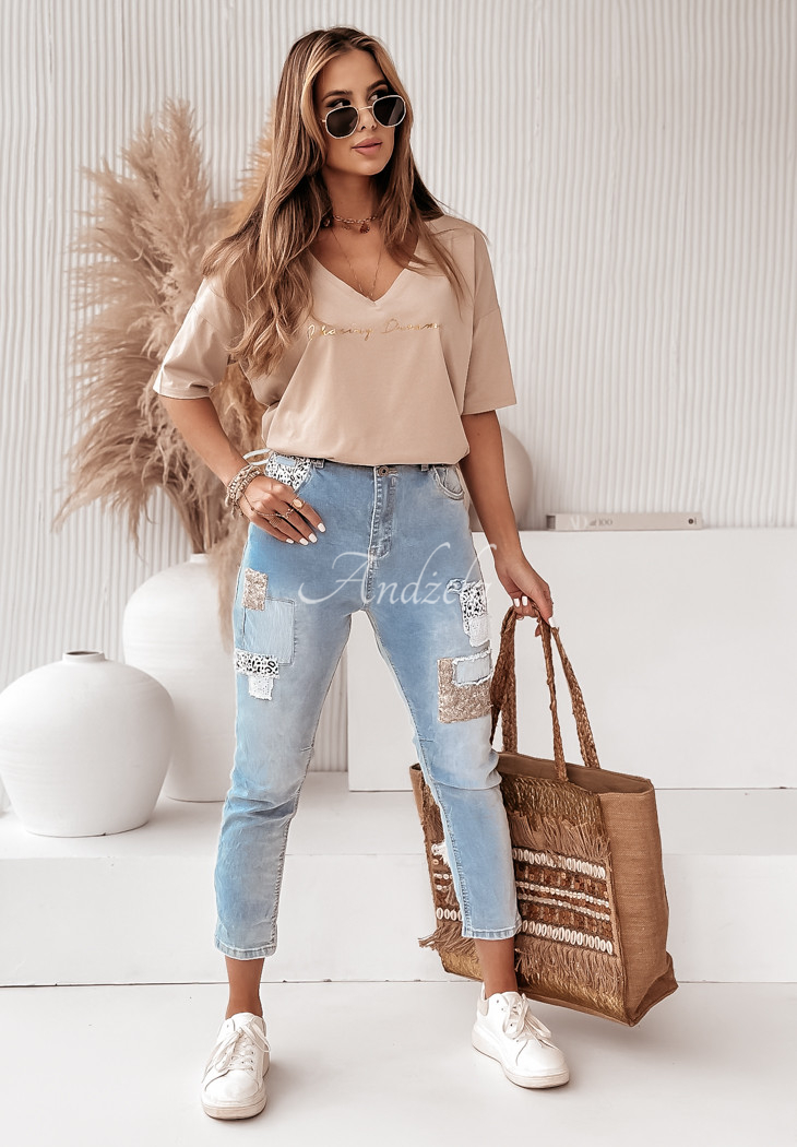 Klasická blúzka v strihu oversize s módnou potlačou. Strih má ženský výstrih do V. Je skvelým základom pre každodenné štylizácie, skvele sa skombinuje s džínsami, či tiež kraťasmi. Produkt je dostupný v niekoľkých farebných variantoch.