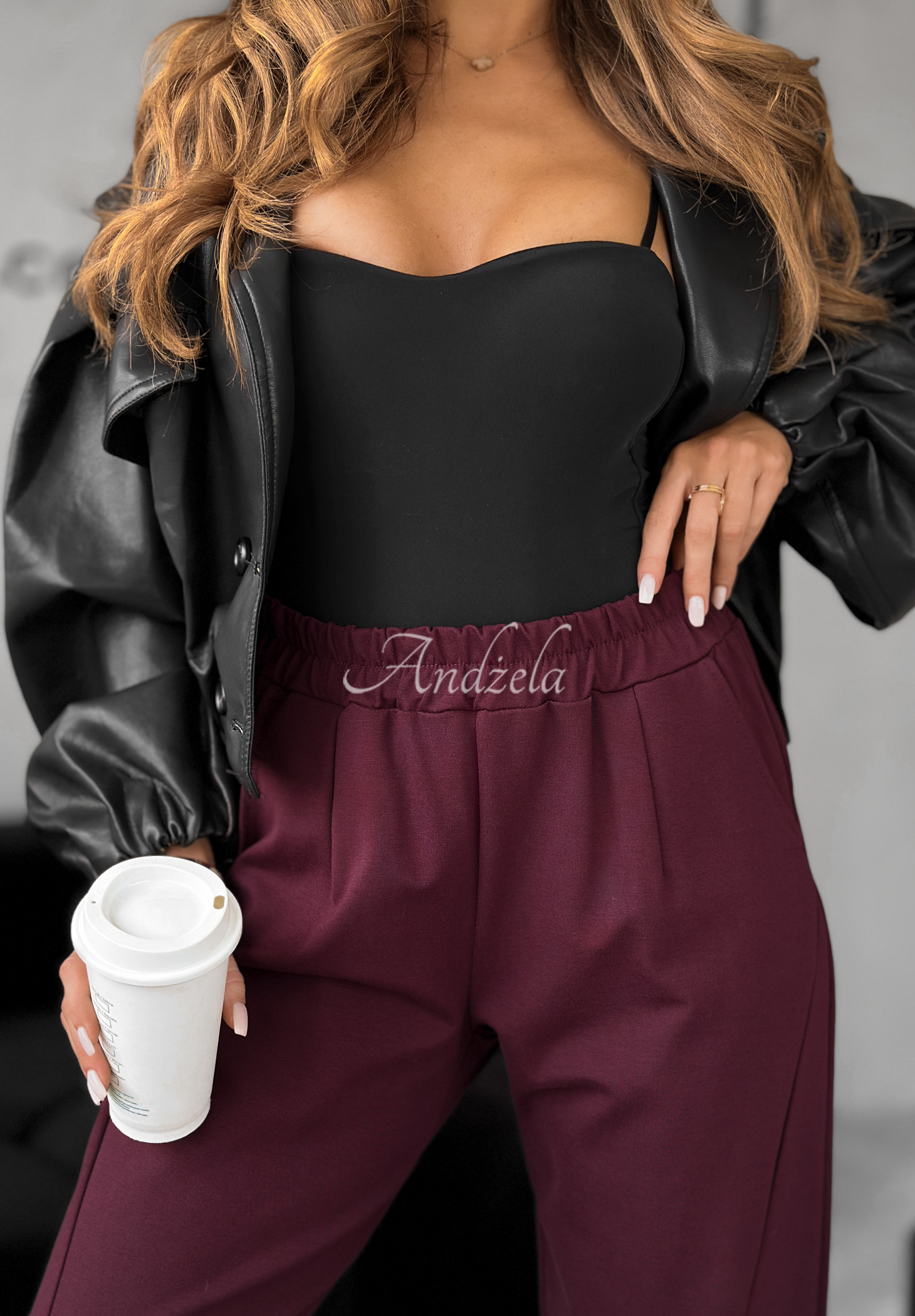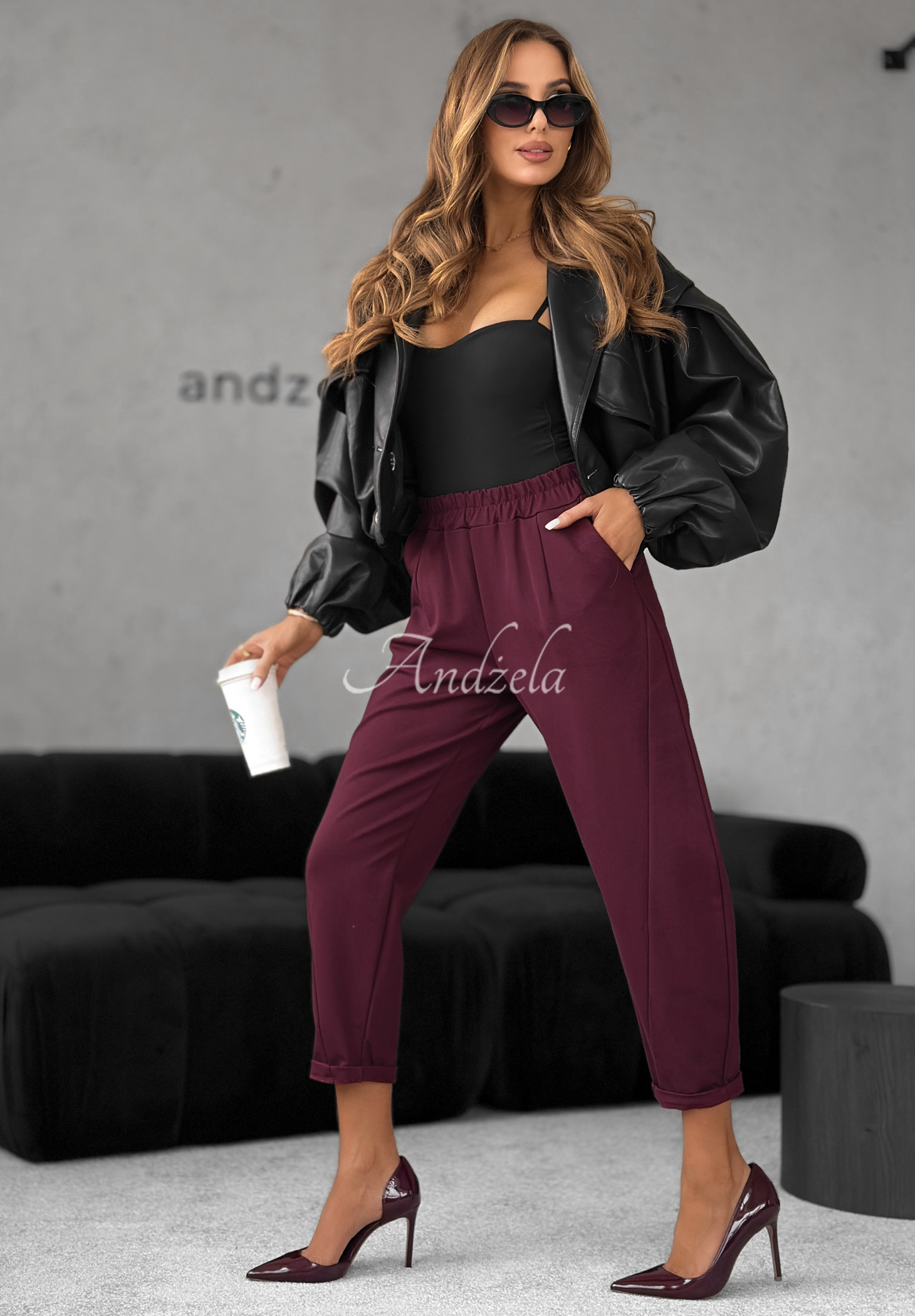 Látkové nohavice majú módny strih banana, vyrobený z vysoko kvalitnej viskózovej tkaniny. Majú elastický pás a funkčné predné vrecká.