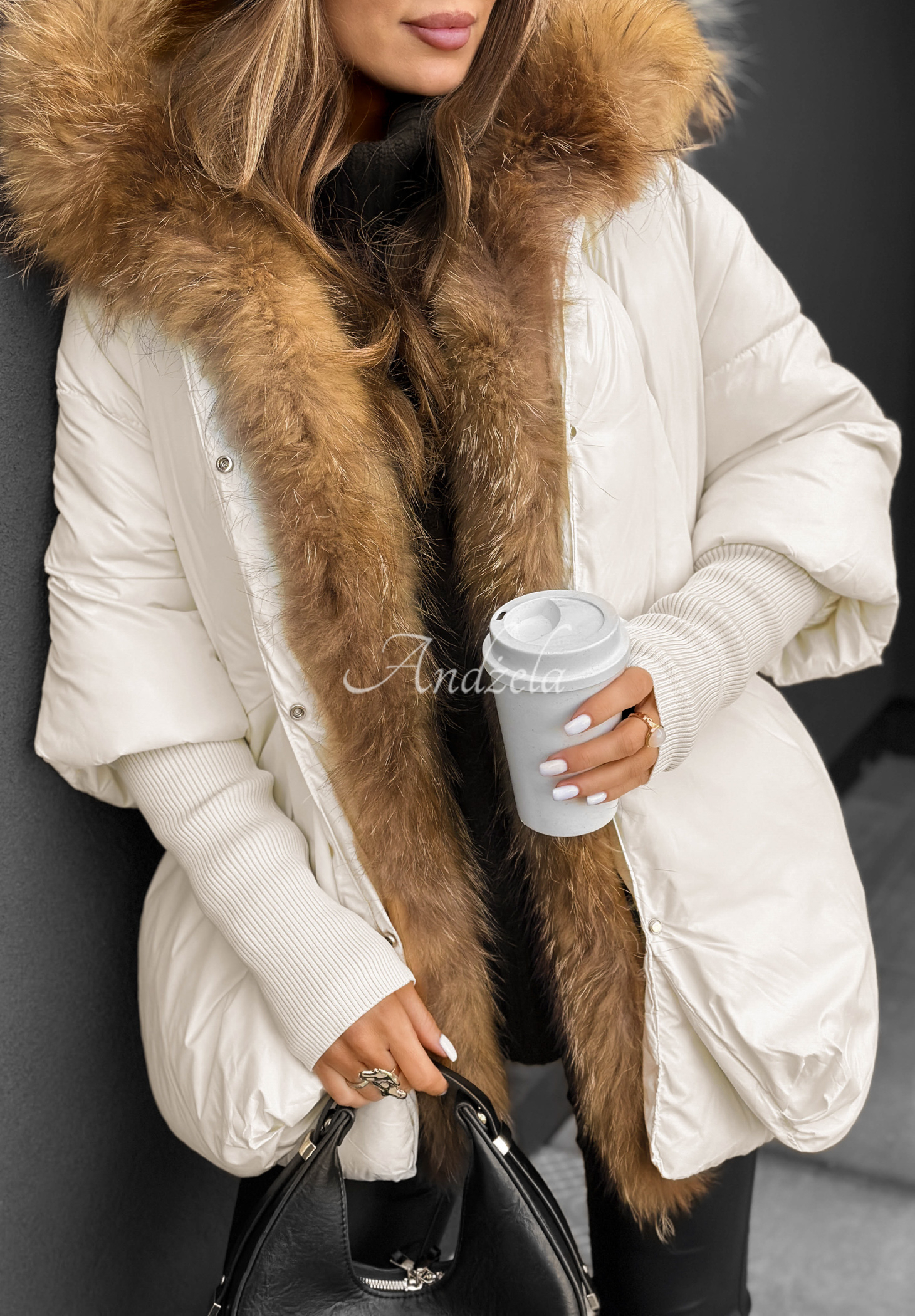 Prešívaná bunda s prírodnou kožušinou, zateplená syntetickým páperím. Tento model má kapucňu a zapínanie na patentný cvok. Má dve funkčné vrecká a dlhé rukávy s rebrovanými manžetami.