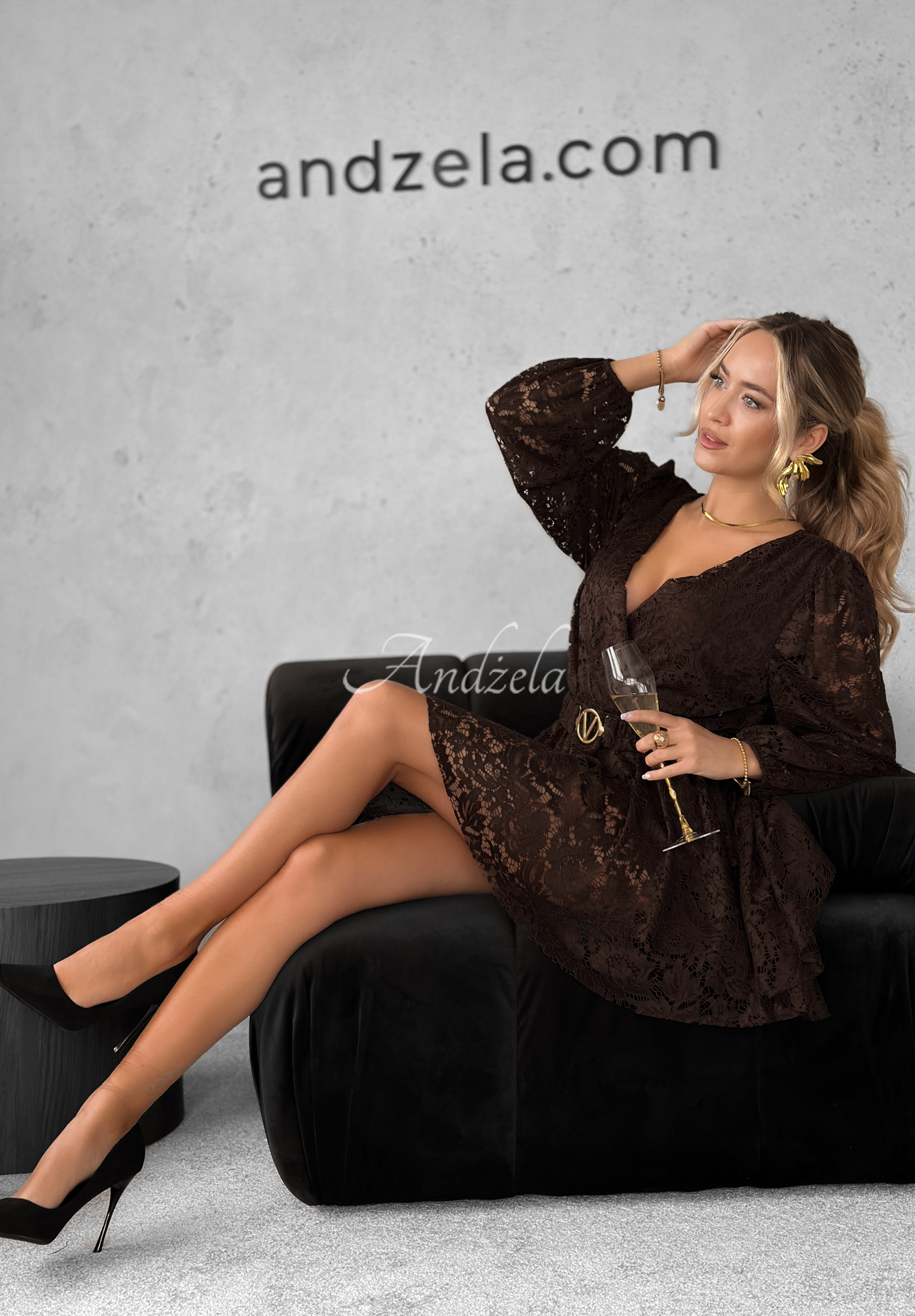 Čipkovaný overal je návrh, ktorý sa bude prezentovať mimoriadne ženským vzhľadom na rôzne príležitosti. Model krátkeho strihu s výstrihom do V má priehľadné rukávy zakončené manžetami. V páse je gumička, vďaka ktorej sa celok dokonale prispôsobí postave a podčiarkne jej prednosti. Súčasťou kompletu je opasok so zlatou prackou, ktorý skvele doplní akýkoľvek styling.