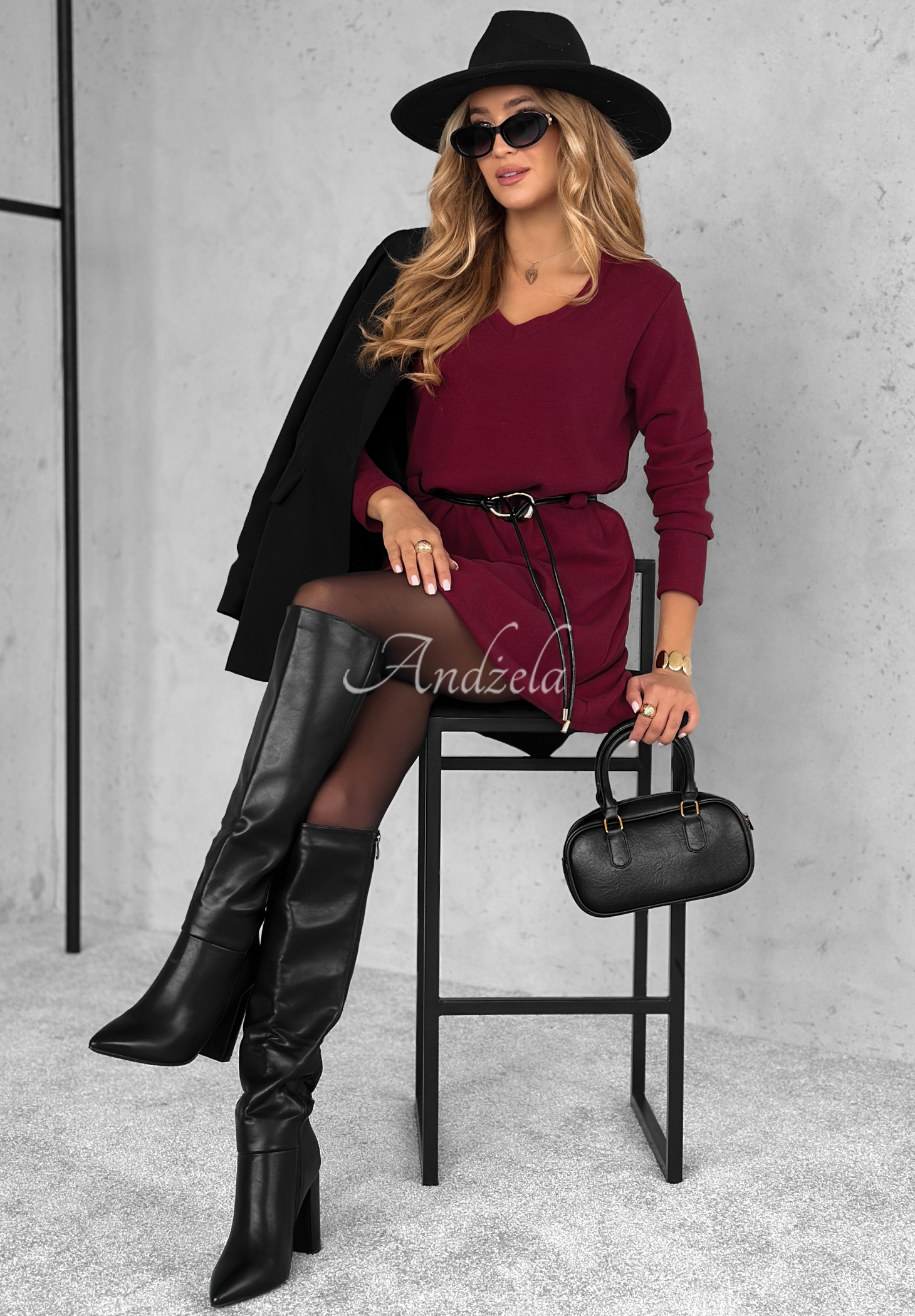 Šaty sú vyrobené z úpletového materiálu s prímesou viskózy. Majú mini dĺžku, výstrih do V a dlhé rukávy. Súčasťou je opasok so zlatým detailom, ktorý dotvára celkový look.
