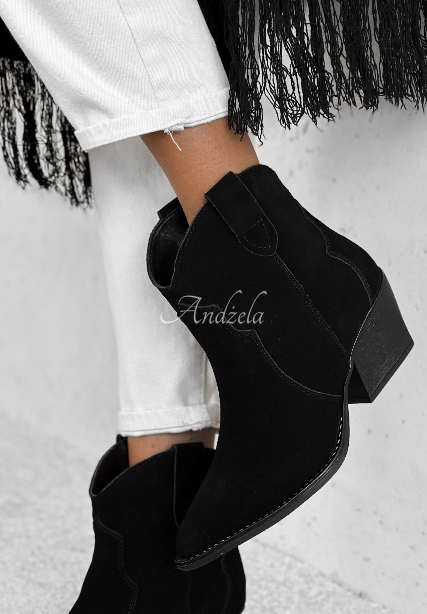 Semišové členkové čižmy vyrobené z prírodnej kože. Tieto kovbojské čižmy majú špicatú špičku a šikmý podpätok. Tento model je ľahko zateplený a nemá zapínanie.* prírodná koža* šikmý podpätok* špicatá špička* bez zapínania* ľahko zateplené