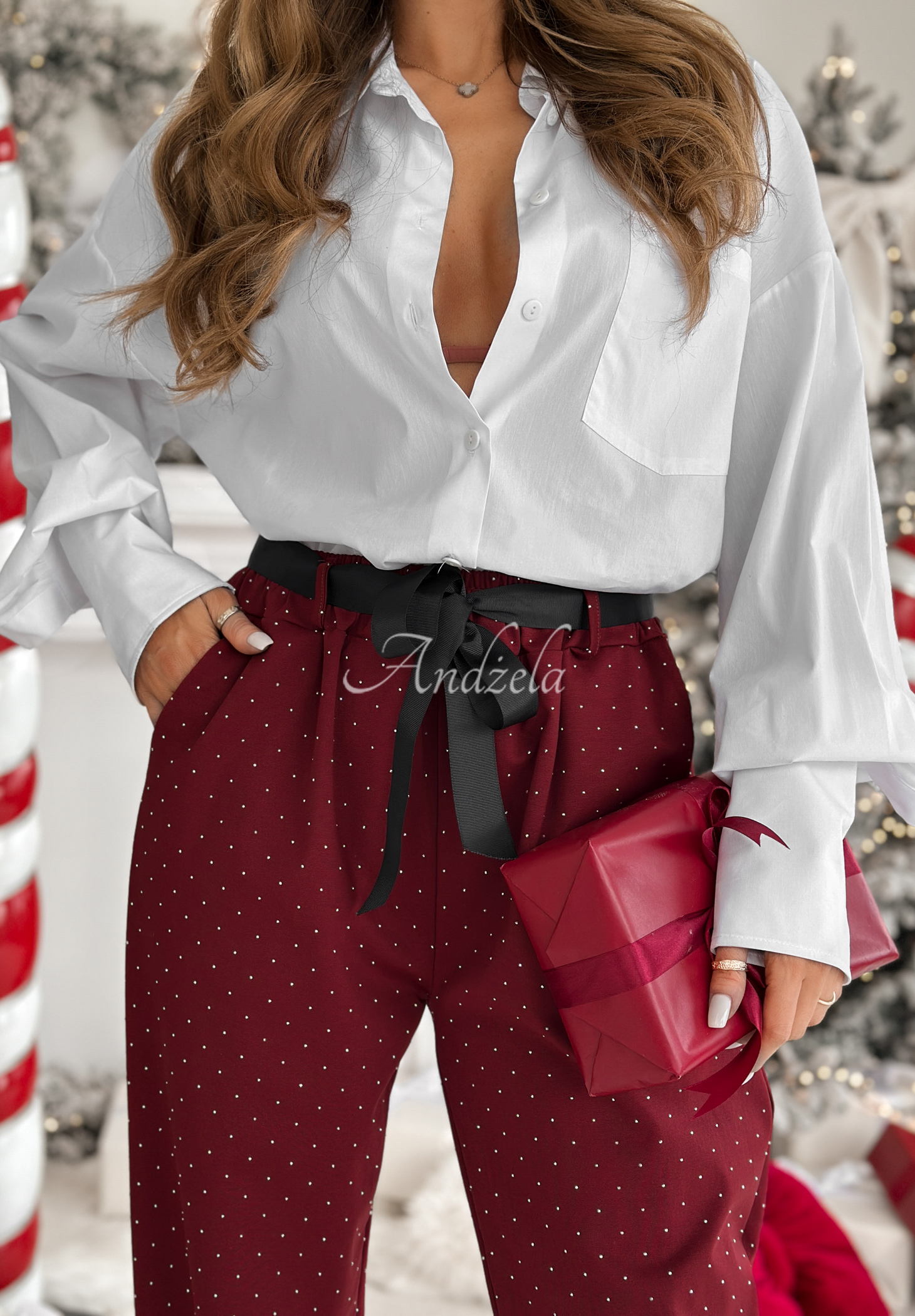 Látkové nohavice s kryštálikmi Dazzling Choice bordové