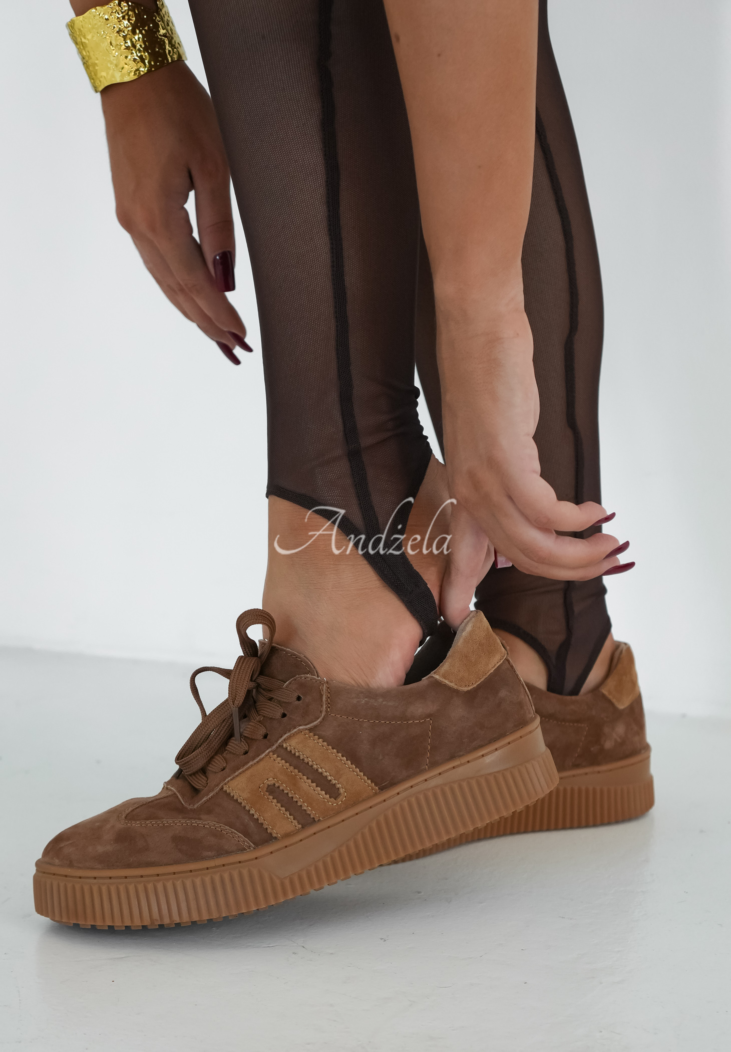 Efektné legíny z jemnej sieťoviny. Tento model má zosilnenie na päte, široký elastický pás a podšívku vo forme šortiek. Celý model je elastický, vďaka čomu dokonale sedí a zvýrazňuje postavu.