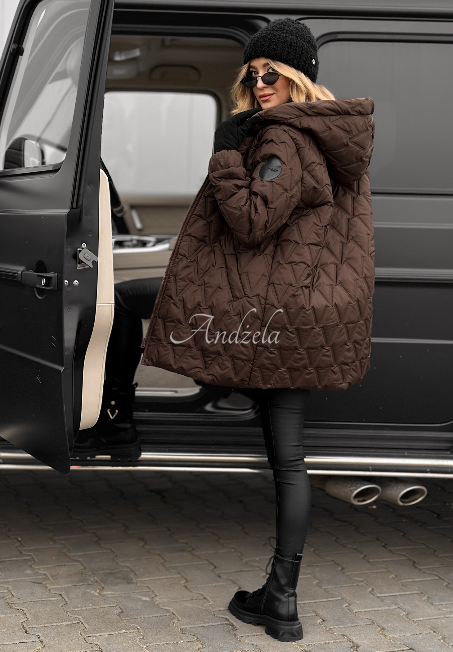 Prešívaná bunda s kapucňou Chilly Nights čokoládová