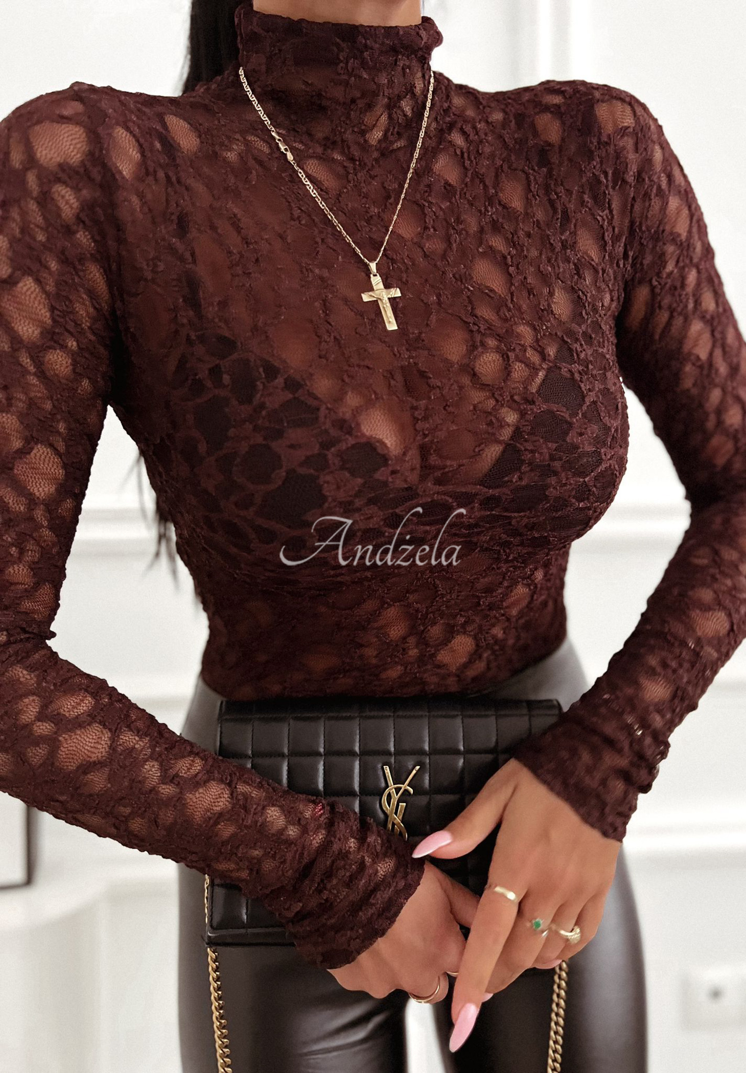 Blúzka klasického štýlu s dlhými rukávmi a stojačikom. Vyrobená z mäkkej, priehľadnej čipky.* elastický materiál* priehľadná čipka* dlhé rukávy* stojačik