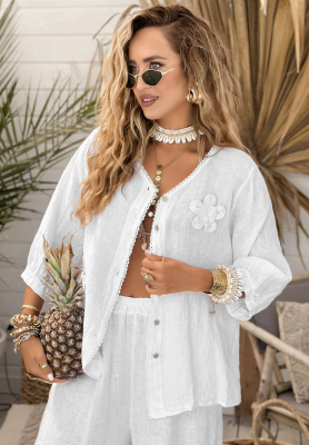 Ľanová blúzka s kvetinami On Vacation Biela