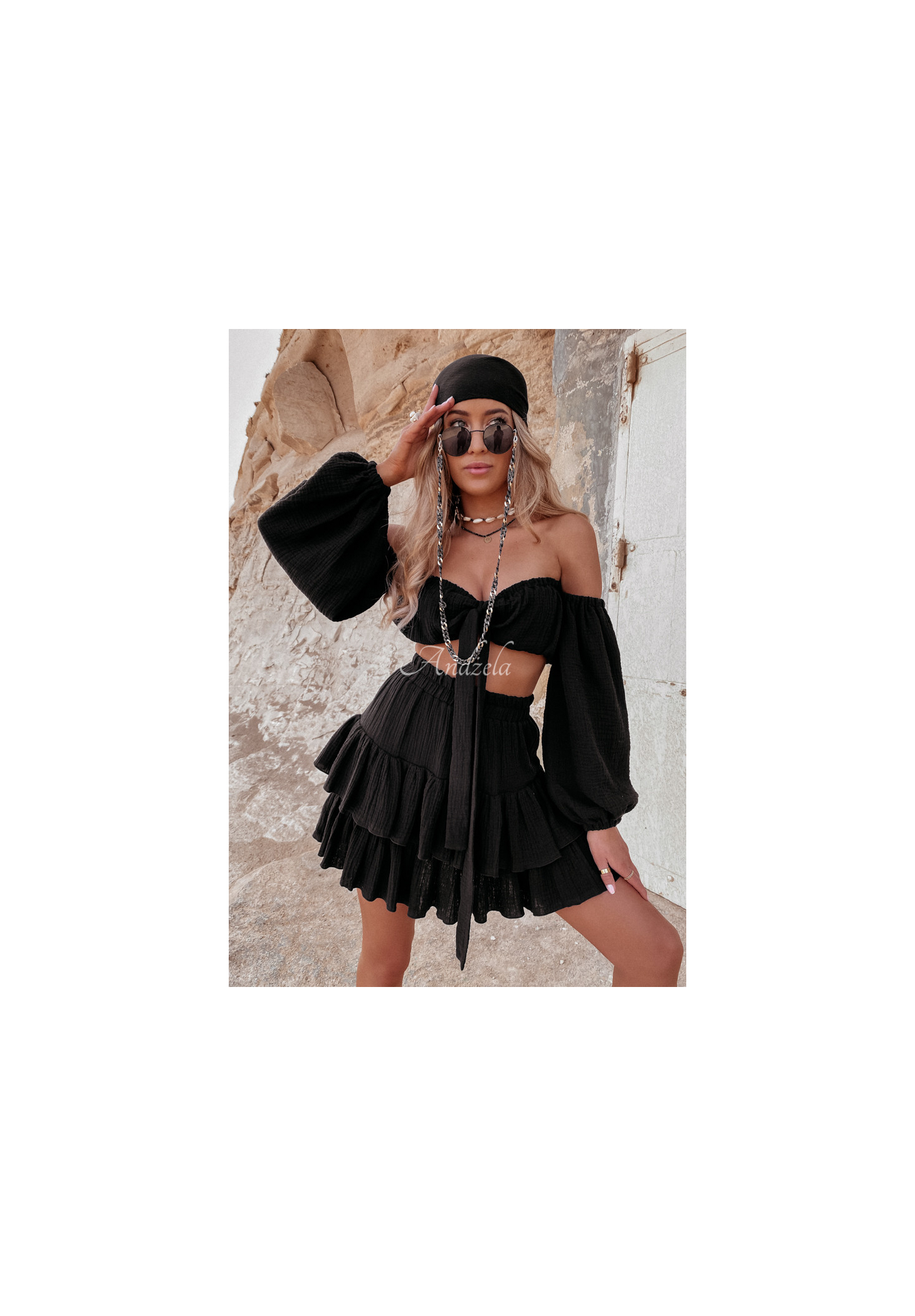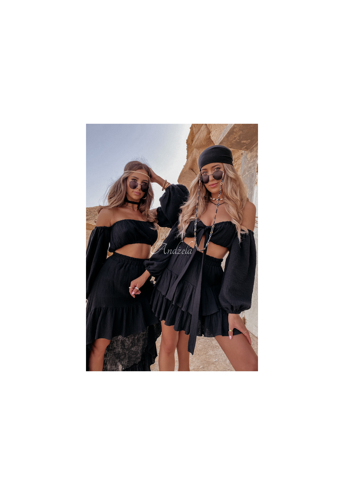Krátka španielka vyrobená z ľahkého, mušelínového materiálu je ideálnym návrhom na horúce dni! Vyznačuje sa mimoriadne dievčenskými, nafúknutými rukávmi. V zostave sa nachádza opasok, ktorým je možné previazať predok blúzky a upraviť ju na rôzne spôsoby. Je ideálnym návrhom pre mnoho letných štylizácií, skombinuj ju s kraťasmi, nohavicami alebo sukňou z tej istej kolekcie a zabezpeč si perfektnú štylizáciu na dovolenku! Produkt vysokej kvality, dostupný v niekoľkých farebných variantoch. Projekt by ANDŻELA!