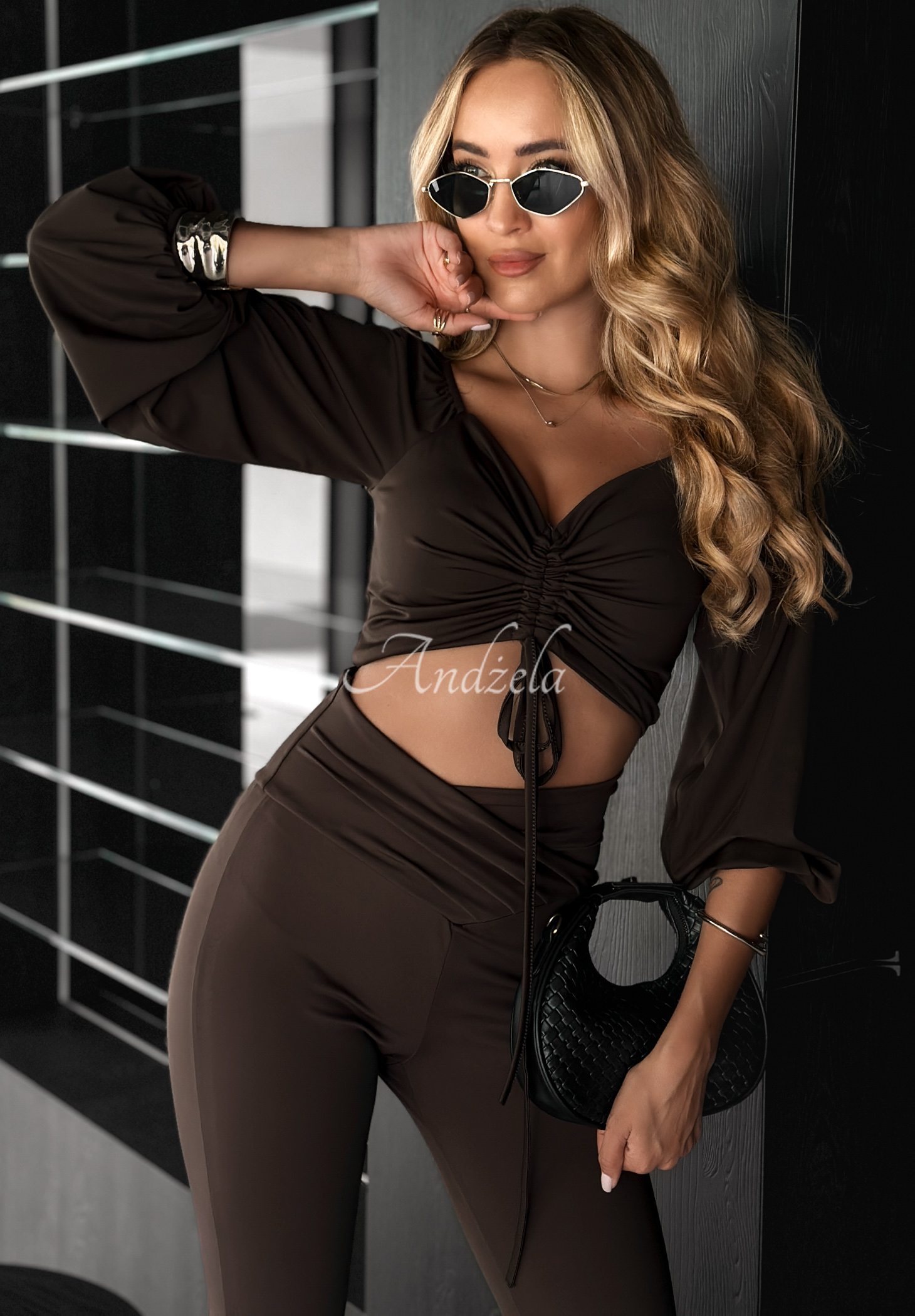 Blúzka s nastaviteľným lemom vpredu. Ide o model s krátkym rukávom a dlhými rukávmi zakončenými šnúrkou.