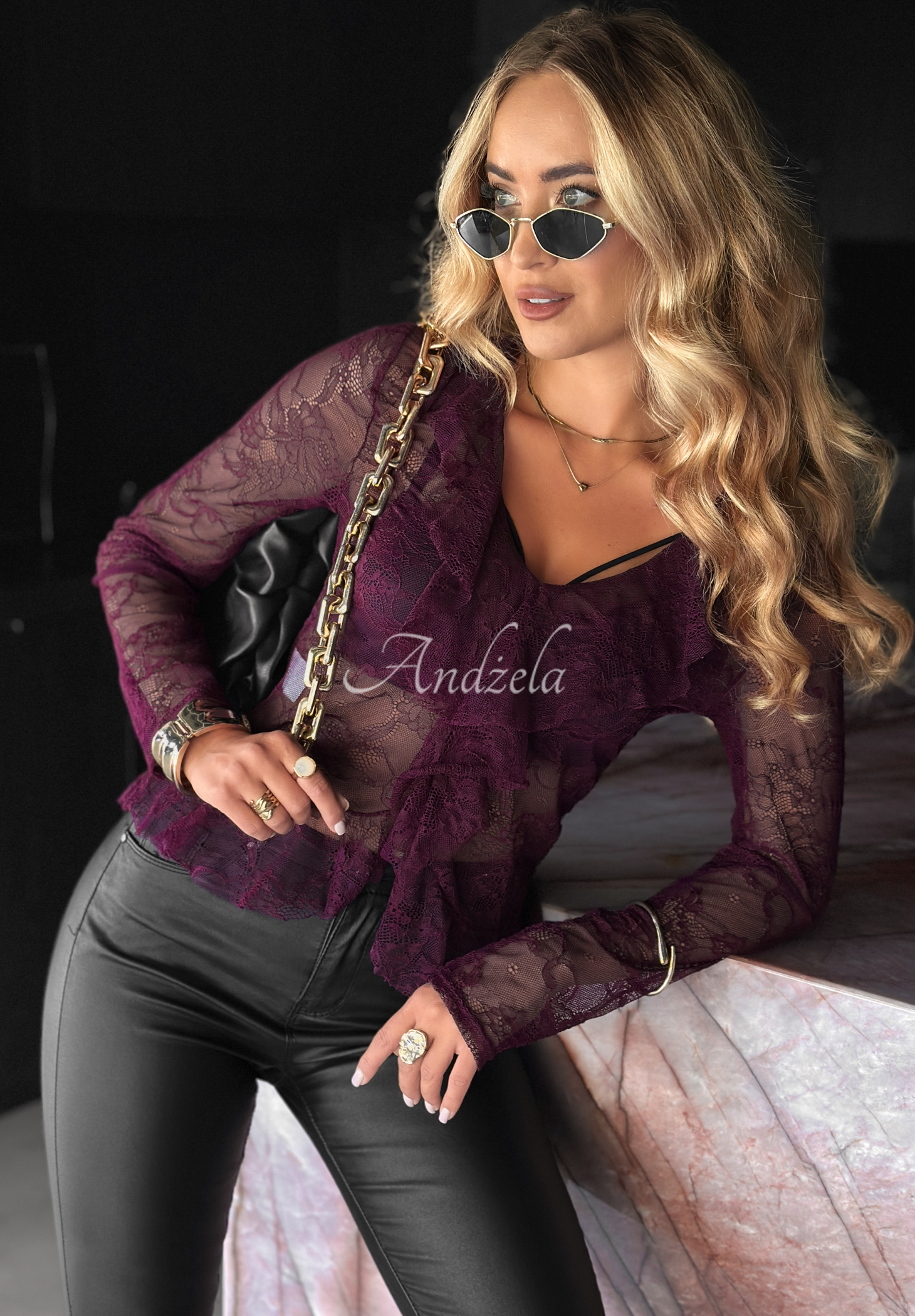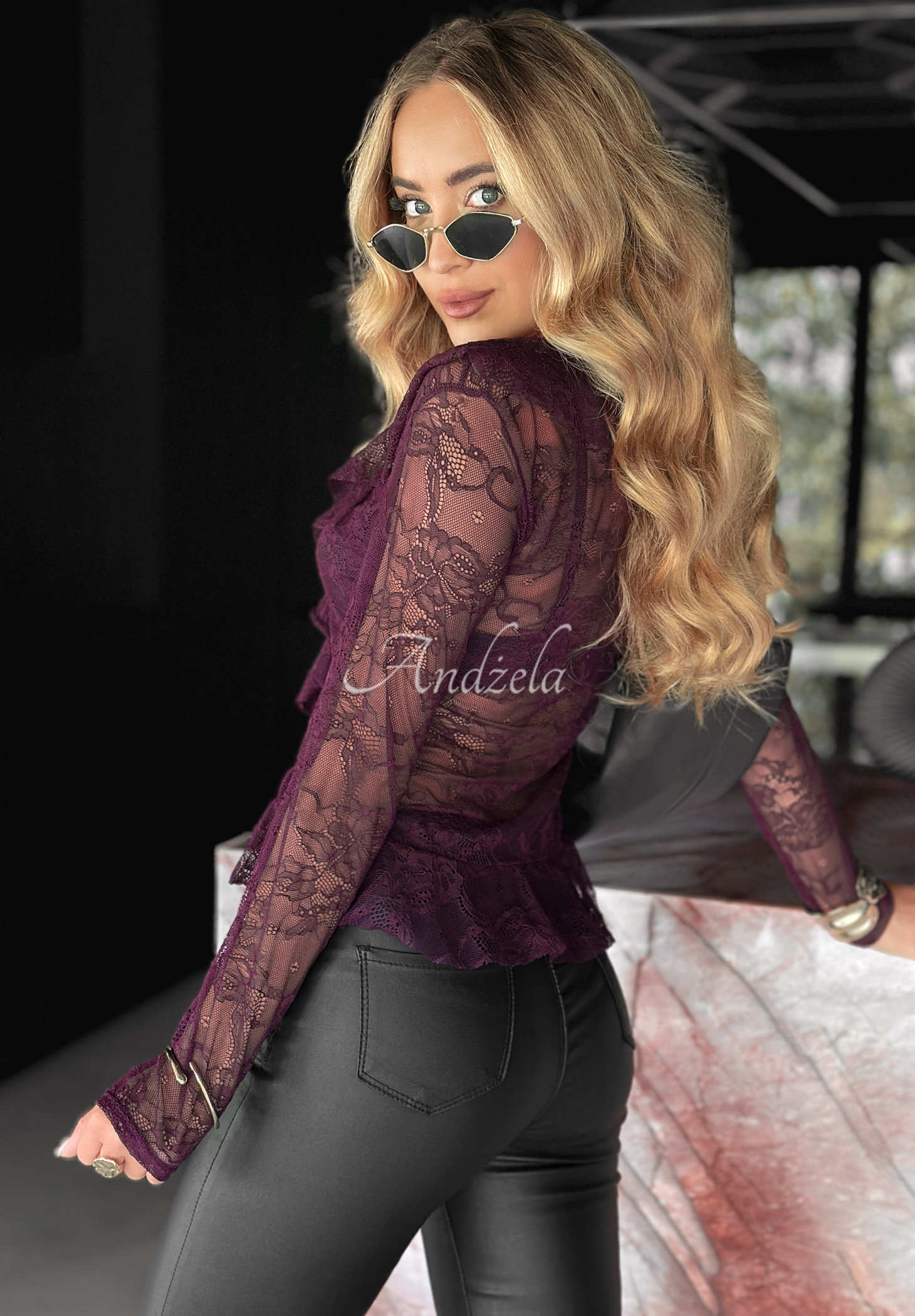 Čipkovaná blúzka s volánikmi Swipe Right bordová