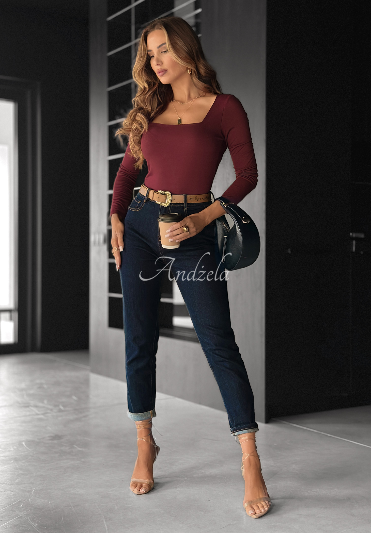 Mäkká blúzka vyrobená z vysoko kvalitného viskózového materiálu. Vyznačuje sa mimoriadne ženským, hlboko vykrojeným štvorcovým výstrihom. Ide o hladký model s priliehavým strihom a dlhými rukávmi.