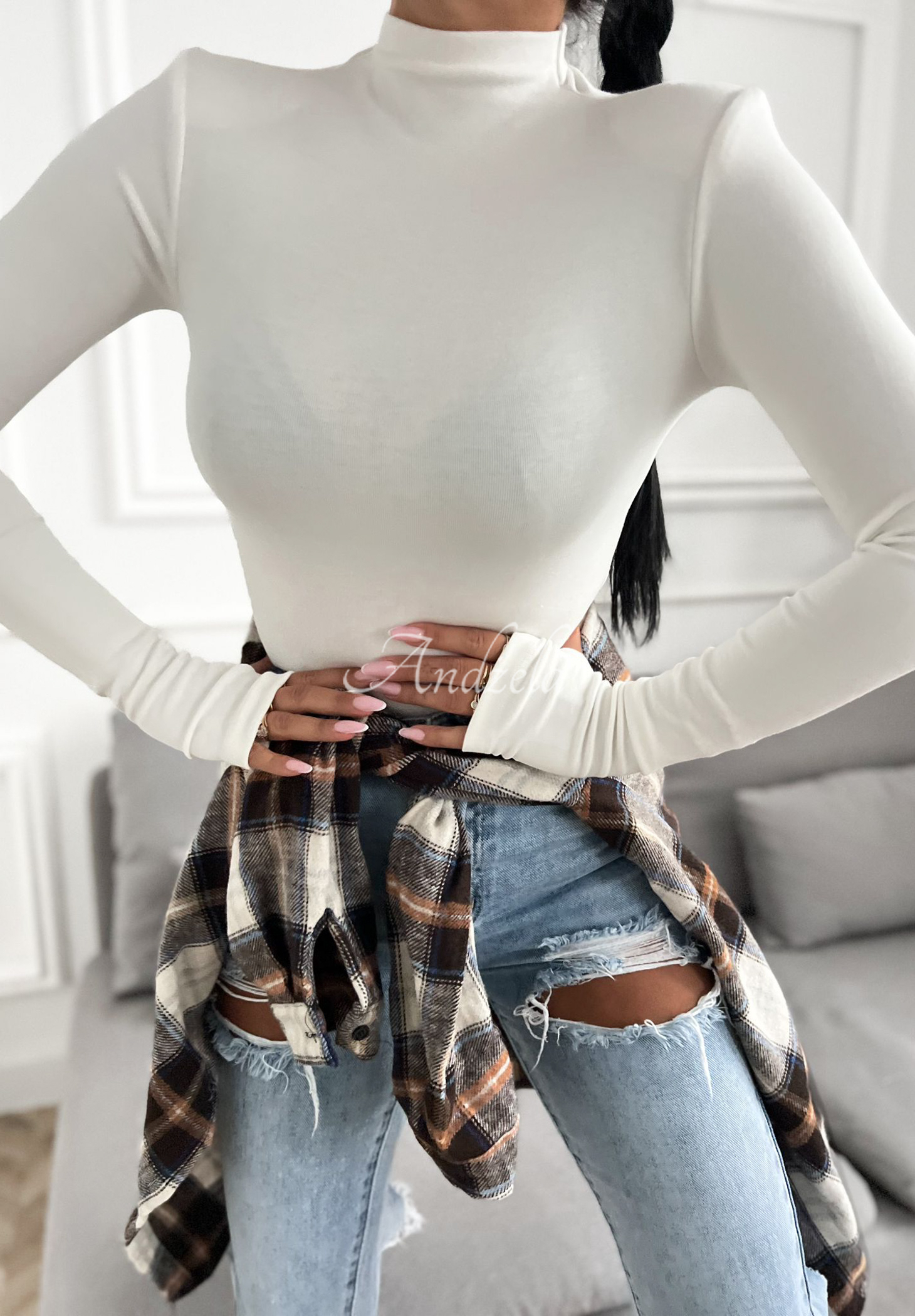 Blúzka z longsleeve s polovičným rolákom First Of All ecru