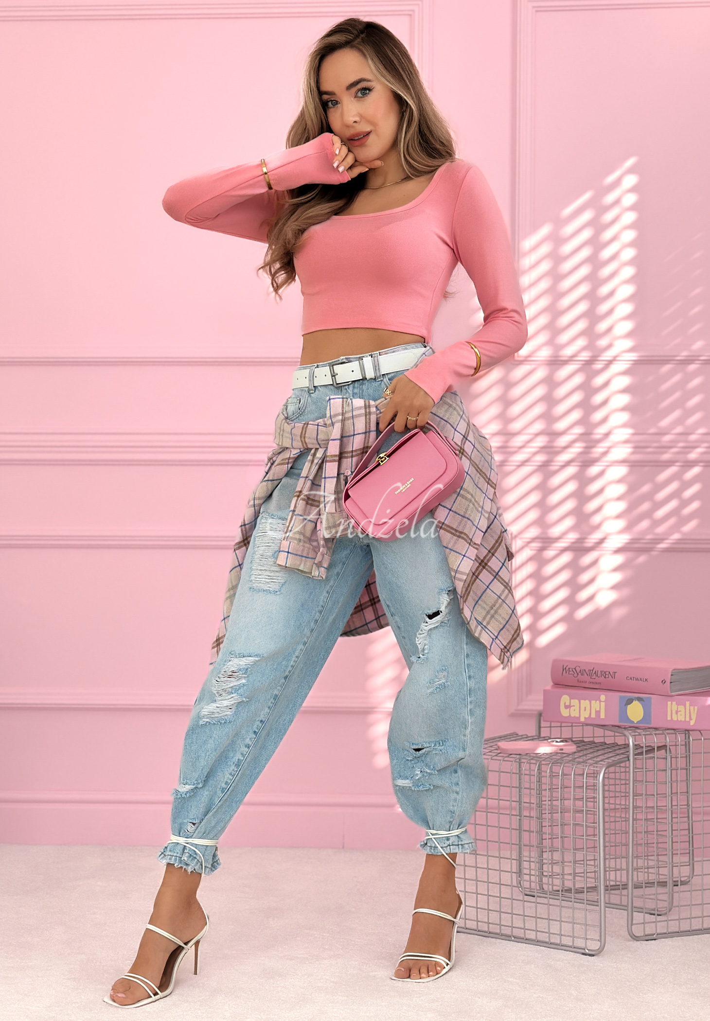 Krátka viskózová blúzka so štvorcovým výstrihom Wasn’t Ready ružová