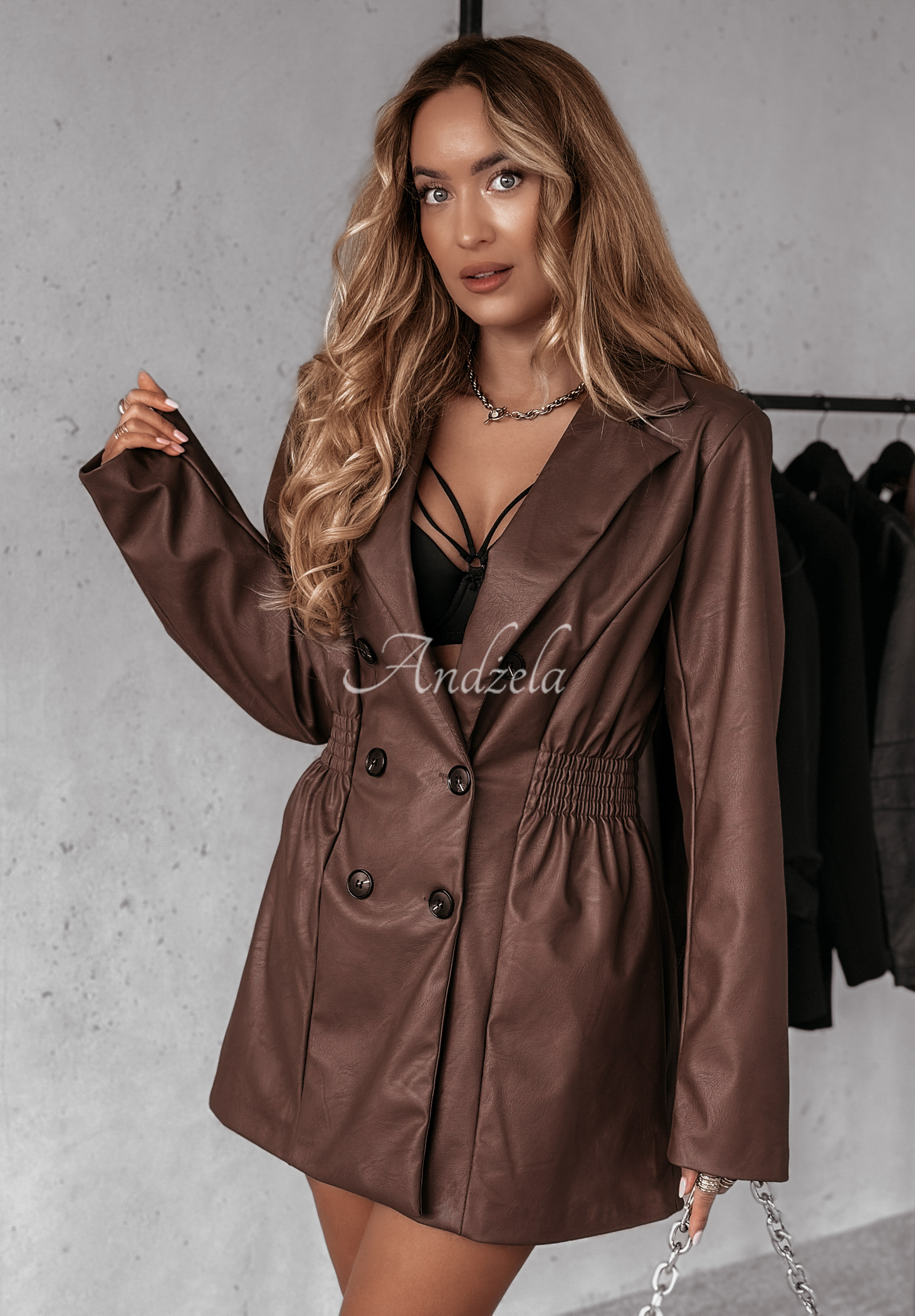 Koženkové sako s gombíkmi Before It Changed čokoládová