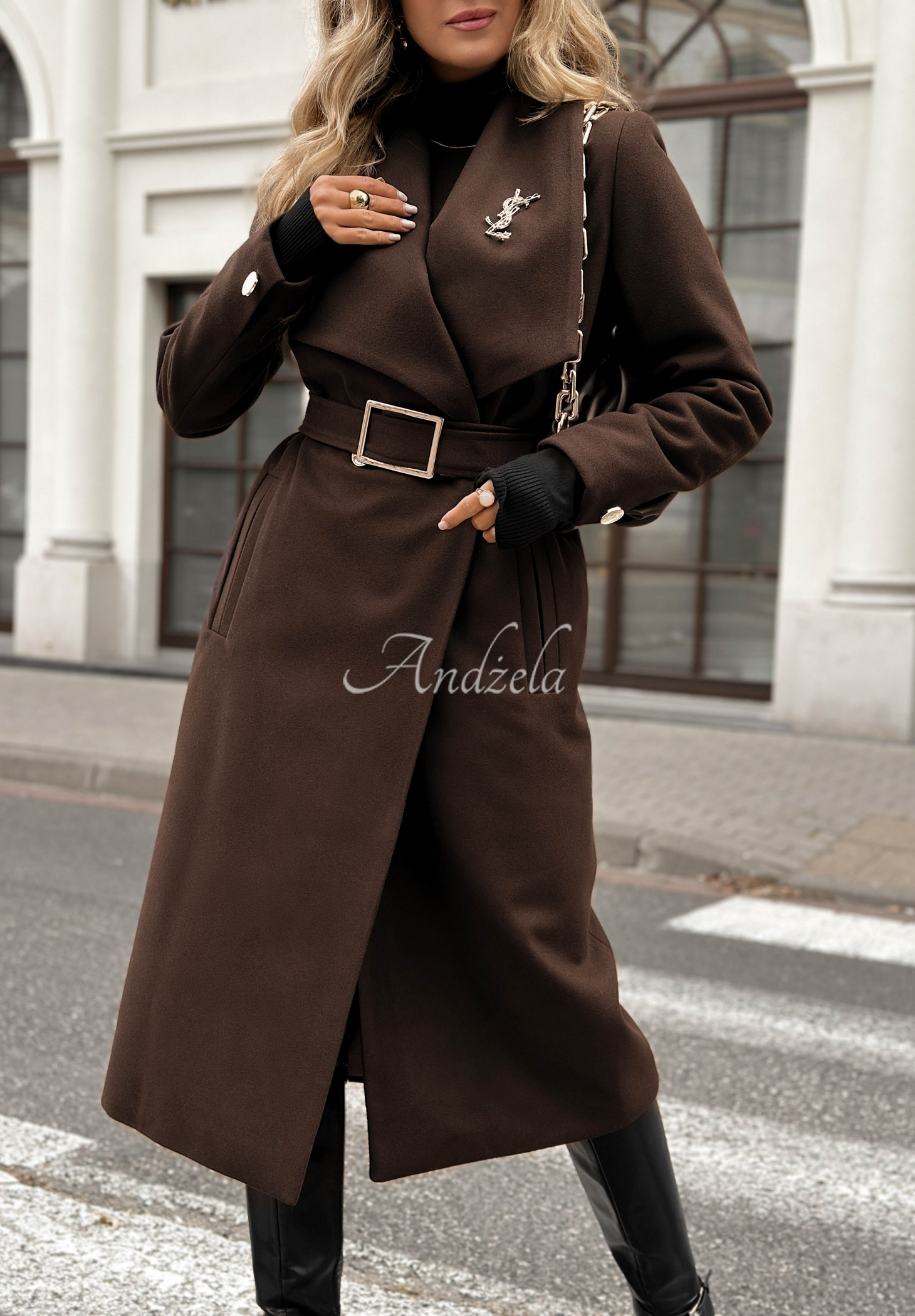 Dlhý vlnený kabát s opaskom Always Yours čokoládový