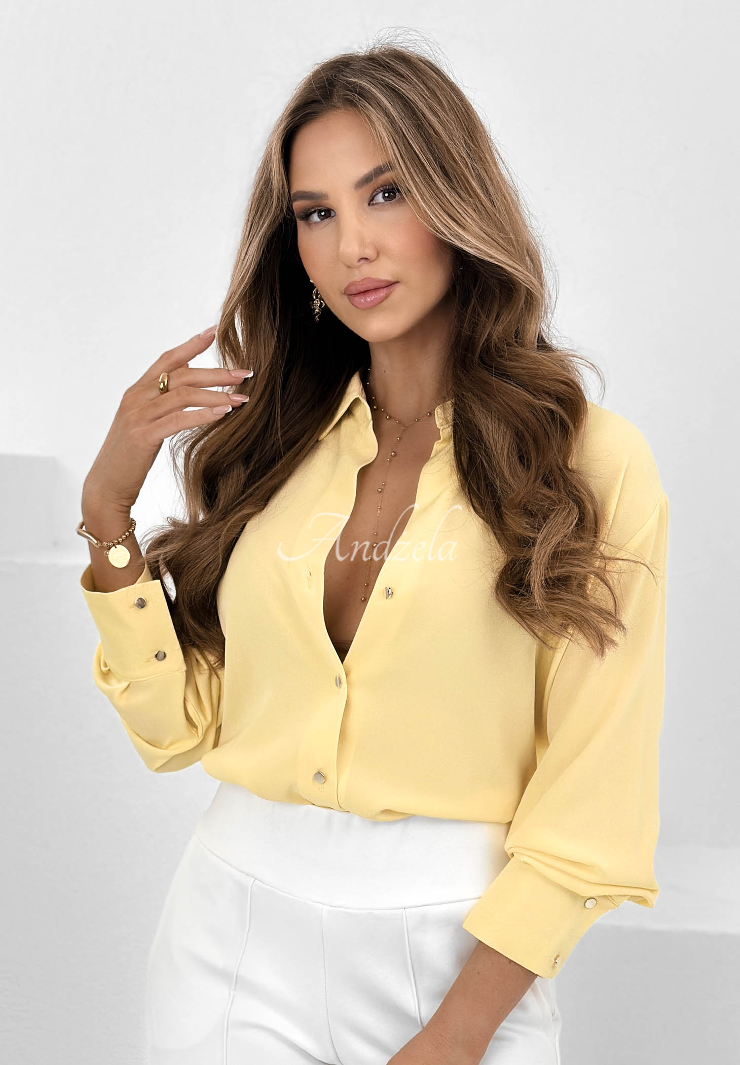 Klasická, hladká košeľa je návrh, ktorý by nemal chýbať v šatníku každej ženy! Tento model má golier, zapínanie na zlaté gombíky, dlhé rukávy zakončené manžetami. Celé to bude perfektne fungovať ako základ pre každodenný a elegantný styling. Produkt je dostupný vo viacerých farebných prevedeniach!