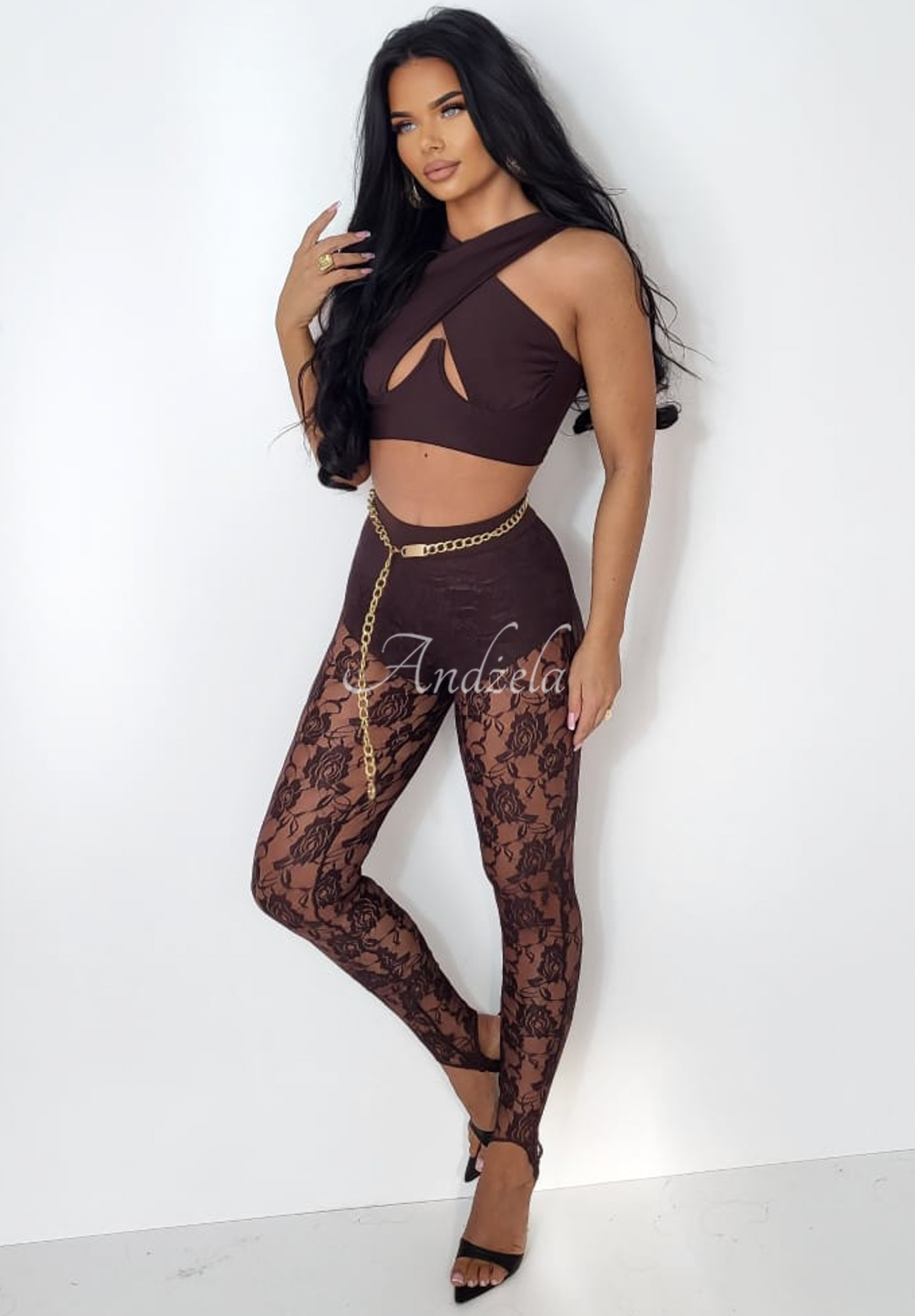 Efektné legíny z jemnej čipky. Tento model má zosilenie na päte, široký elastický pás a podšívku vo forme šortiek. Celý model je elastický, vďaka čomu dokonale sedí a zvýrazňuje postavu.