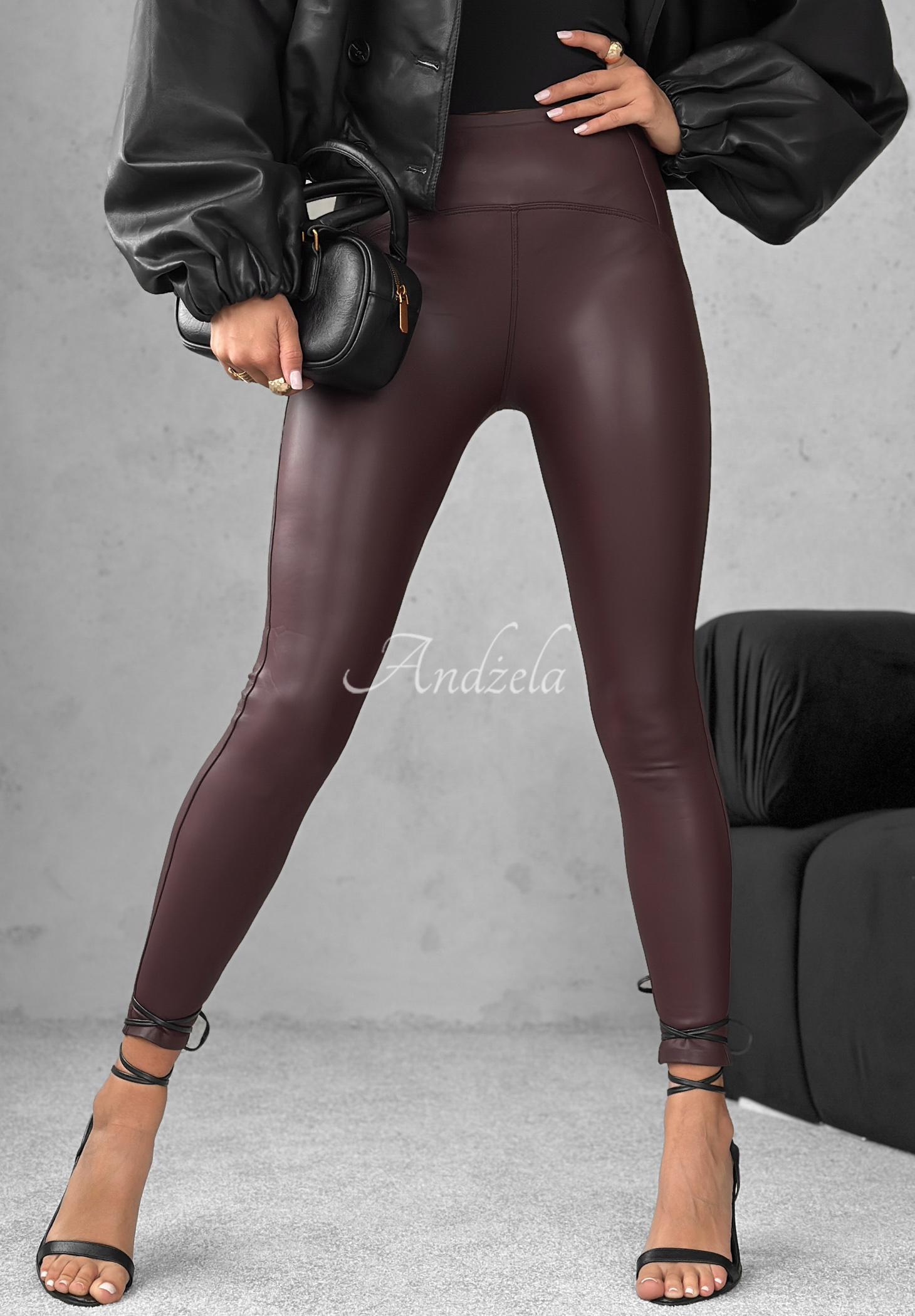 Pohodlné legíny z umelej kože. Majú elastický pás a sú ľahko zateplené. Tento elastický model sa perfektne prispôsobí vašej postave.* elastický materiál* imitácia kože* elastický pás* ľahko zateplené