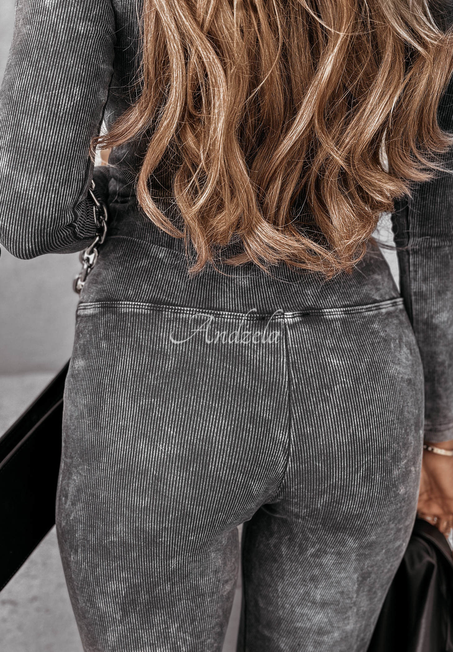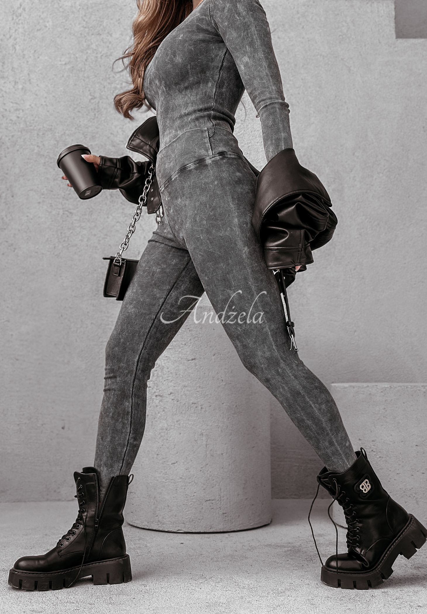 Bavlnené legíny sú ideálne ako základ pre každodenný styling. Vyznačujú sa dekatizovaným materiálom, ktorý dodáva celku zaujímavý charakter. Sú vyrobené z pružného, vrúbkovaného materiálu, vďaka čomu sa perfektne prispôsobia postave a zvýrazňujú jej prednosti.