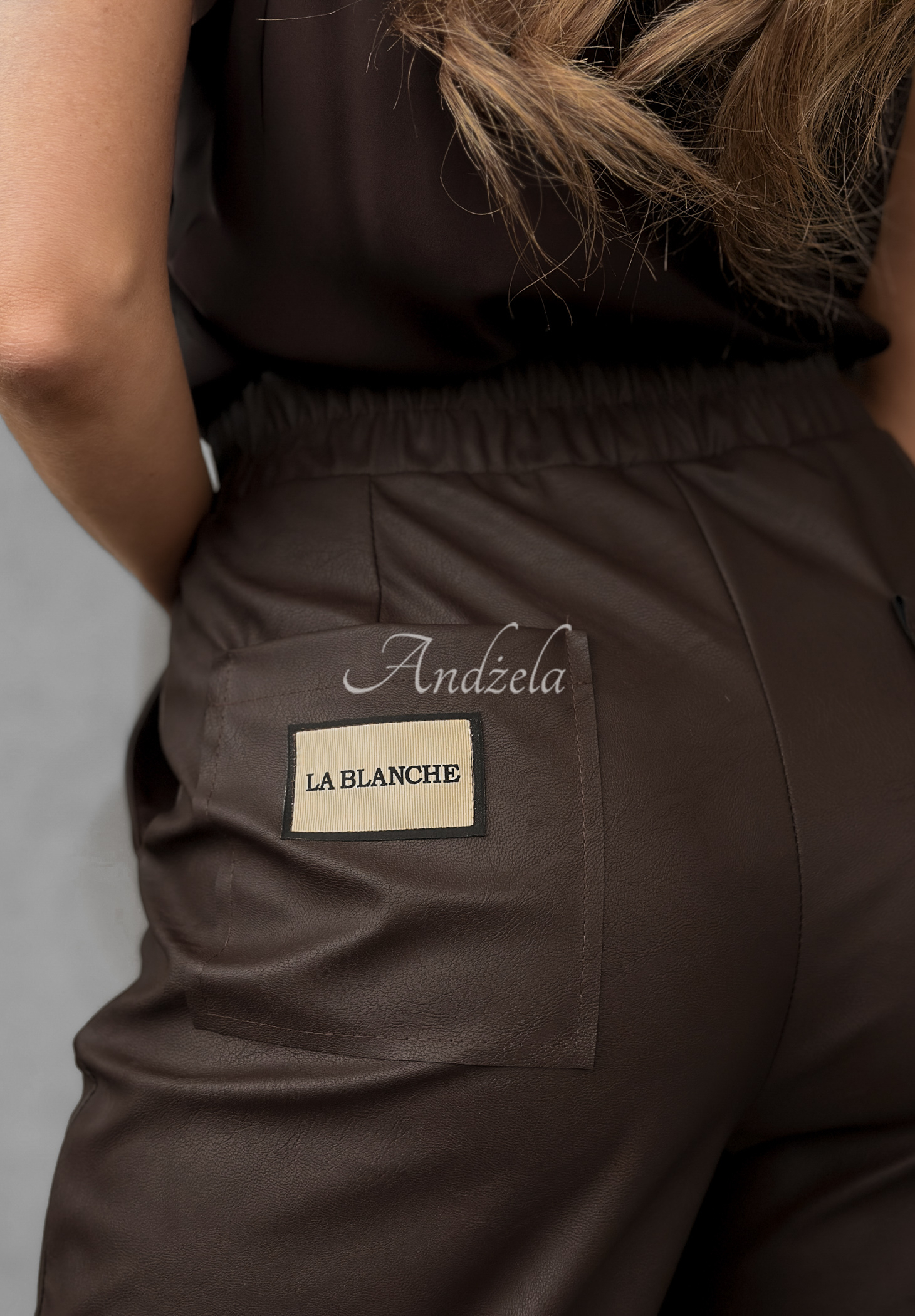 Nohavice z voskovanej látky. S elastickým pásom, zadnými vreckami a zúženými nohavicami.* Elastická látka* Elastický pás* Zadné vrecká* Voskovaná látka* Zúžené nohavice