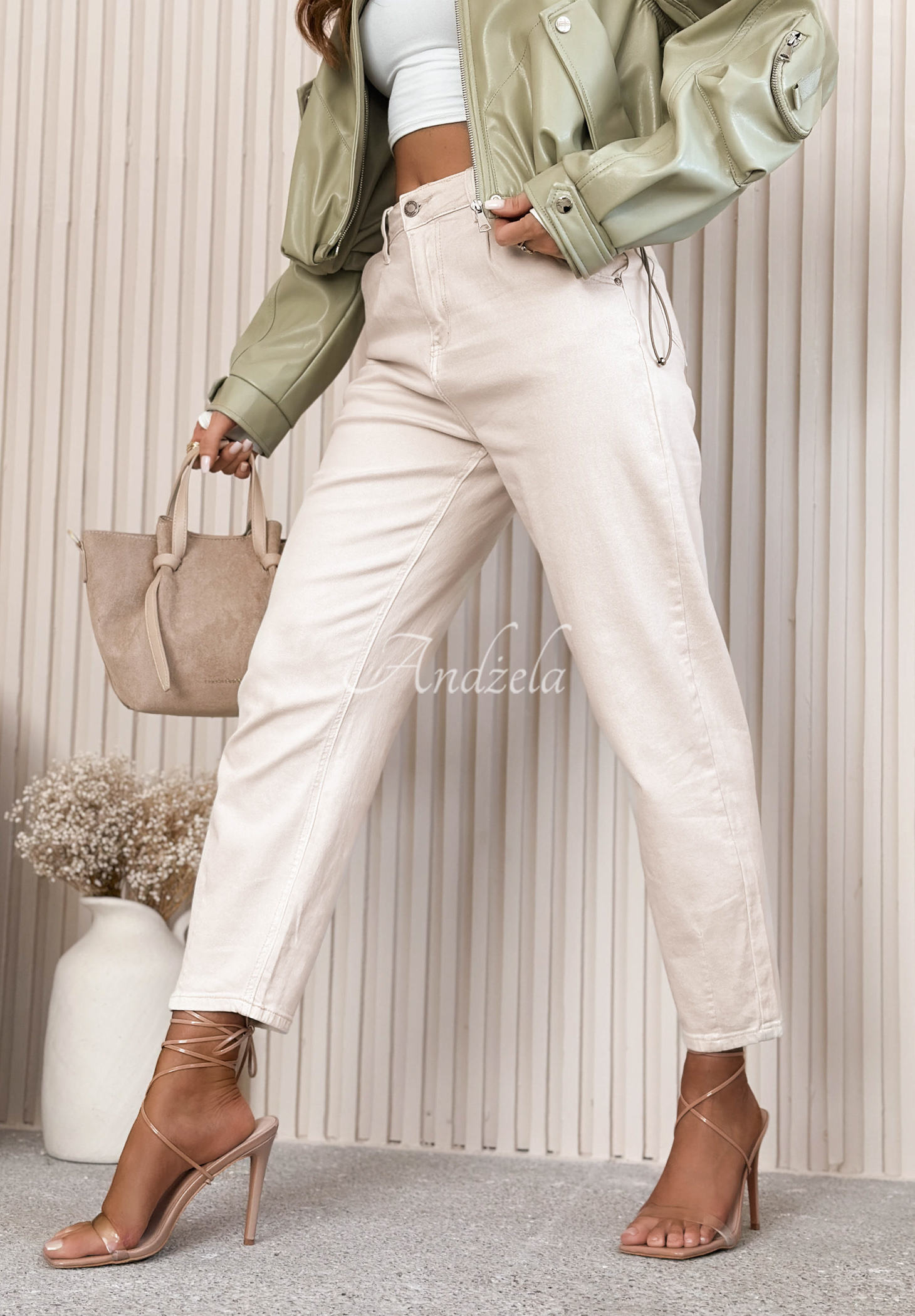 Džínsy balloon Gracie svetlobéžové