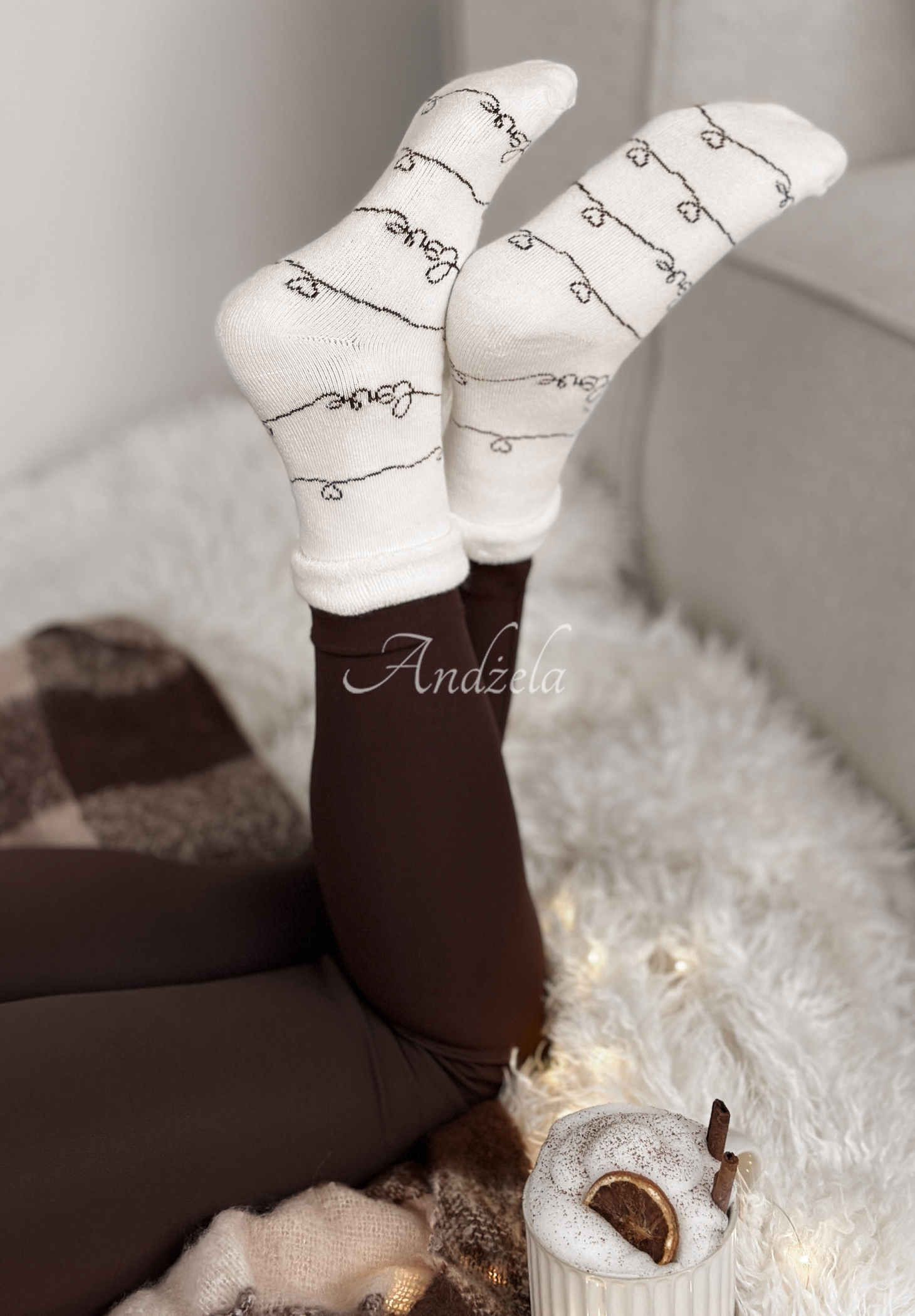 Dlhé ponožky s módnym vzorom. Tento produkt má úzku manžetu vyrobenú z hrubej, elastickej bavlny.