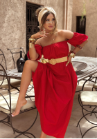 Lesklé šaty s naberanými rukávmi Just Saying červená