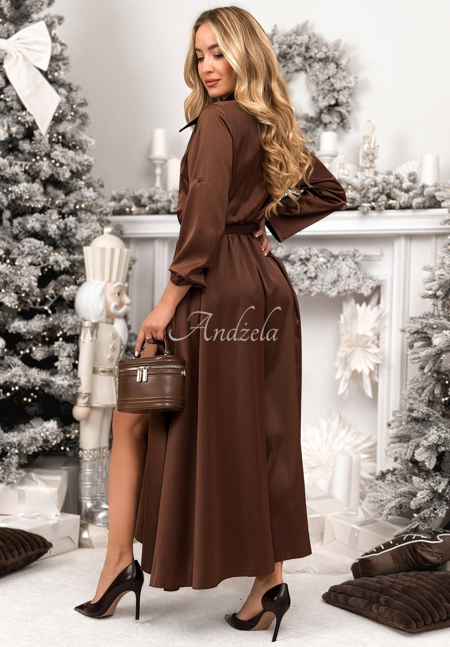 [title] => Koszulowa satynowa sukienka 𝐌𝐚𝐲𝐛𝐞 𝐘𝐞𝐬 𝐌𝐚𝐲𝐛𝐞 𝐍𝐨 w czekoladzie! 🤎 >> boski, lejący się materiał!