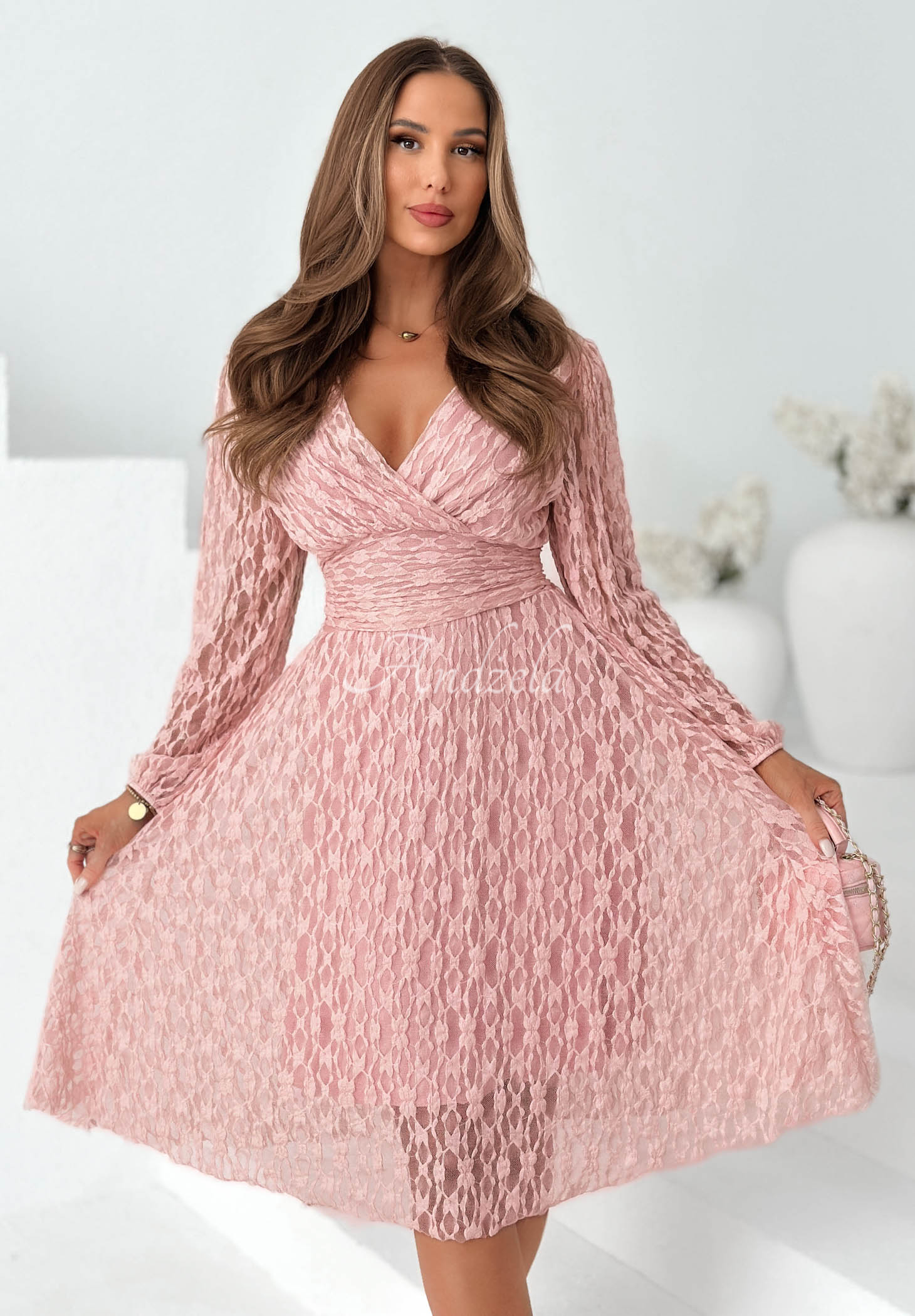 Čipkované šaty s nariaseným pásom Good Moment púdrovo ružová