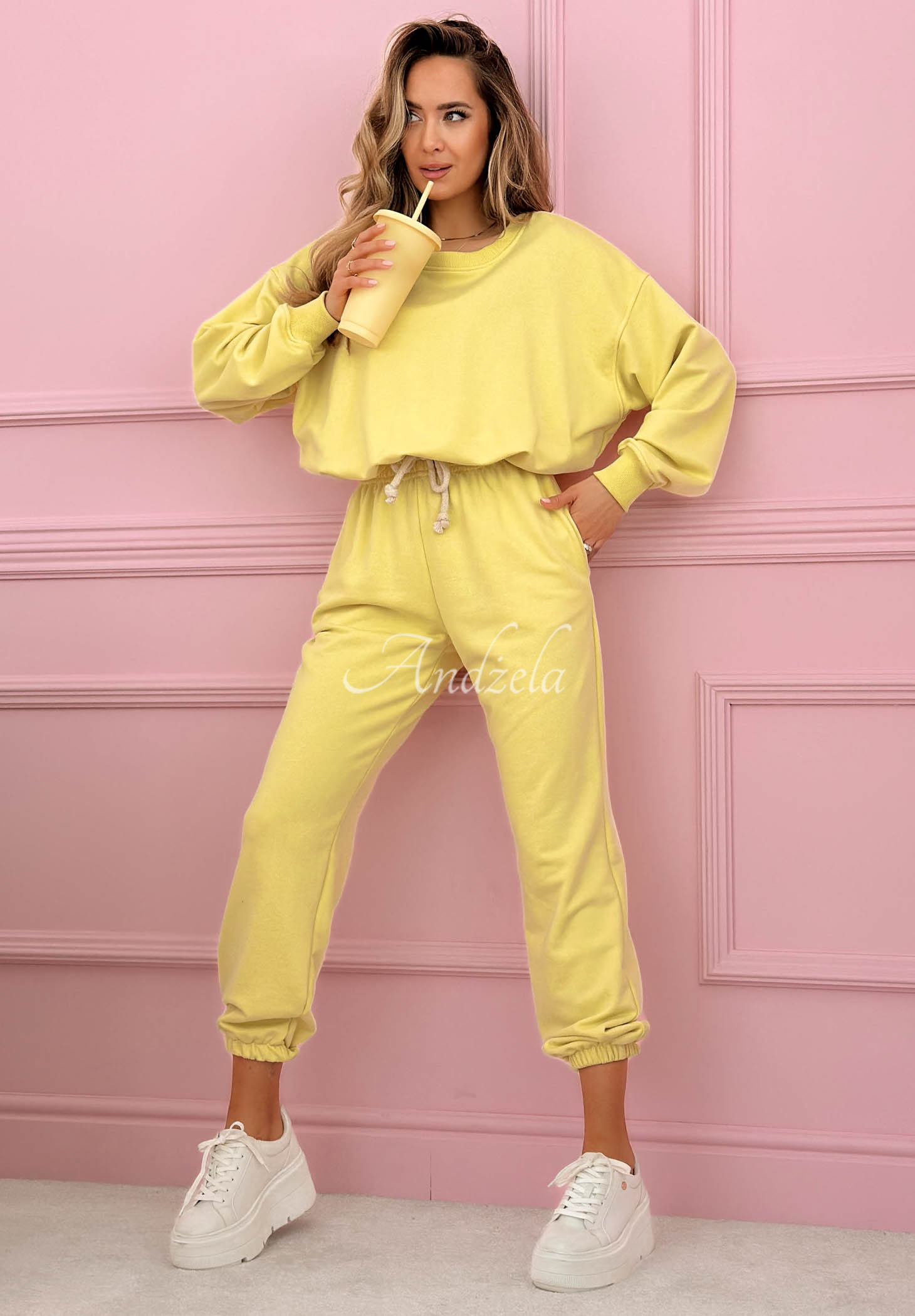 Bavlnená tepláková súprava mikina a nohavice Denise banánový