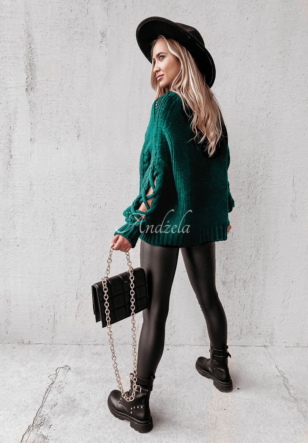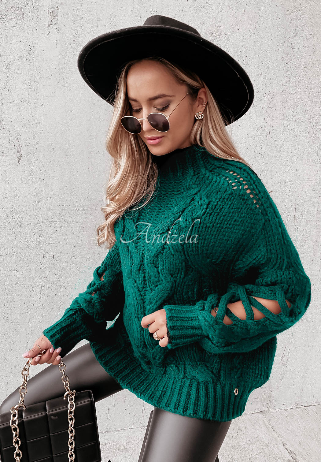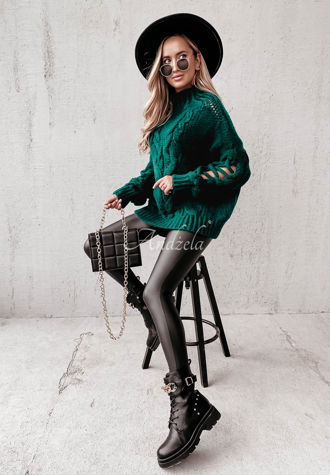 Krásny sveter s ozdobnou väzbou je perfektnou voľbou pre jesenné a zimné štylizácie. Vyznačuje sa originálnymi rukávmi, ktoré mu dodávajú charakter. Oversize model má stojačik. Krásne sa bude prezentovať v elegantných aj športových štylizáciách. Produkt je dostupný v niekoľkých farebných variantoch.
