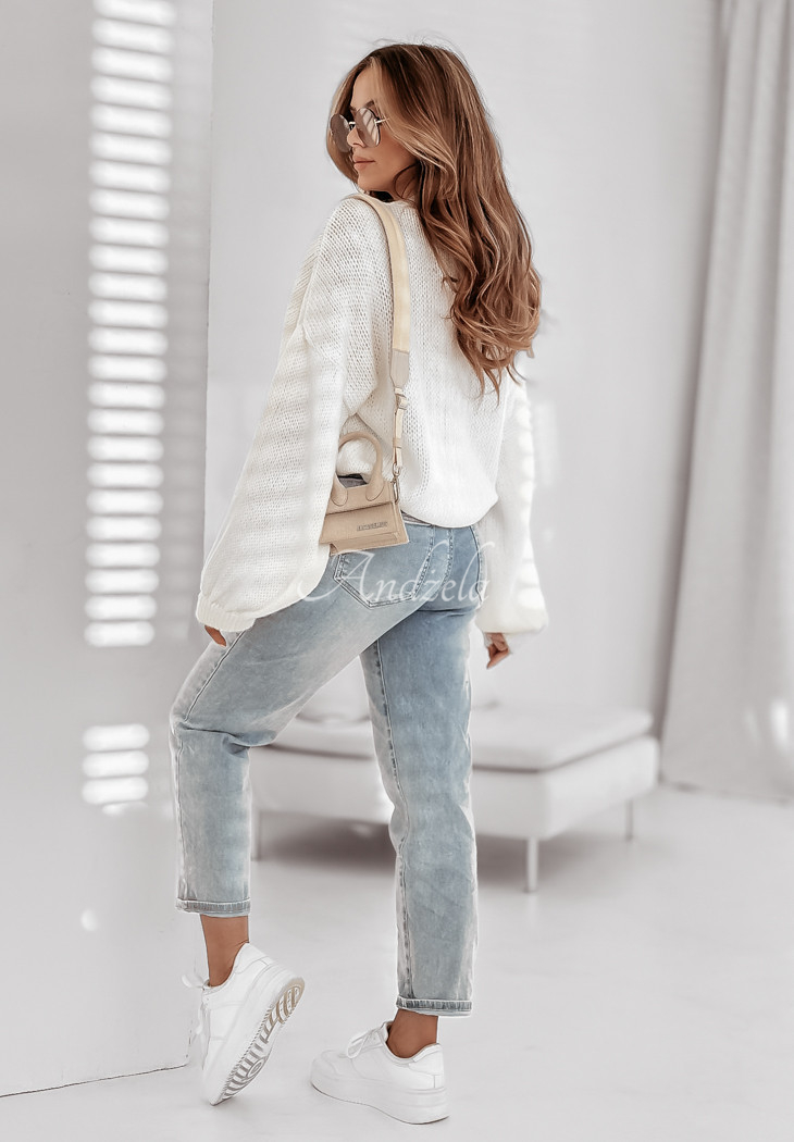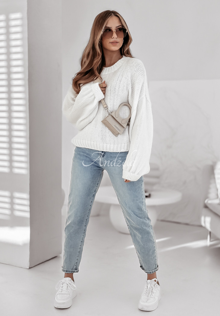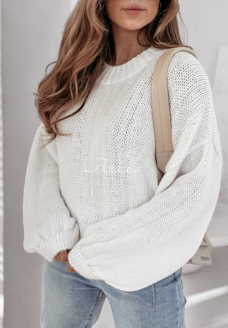 Oversize sveter je dokonalým základom pre mnohé každodenné stylingy. Model s okrúhlym výstrihom má manžety na rukávoch a na spodnom okraji. Dostupný v dvoch farebných verziách. Projekt by ANDŻELA!