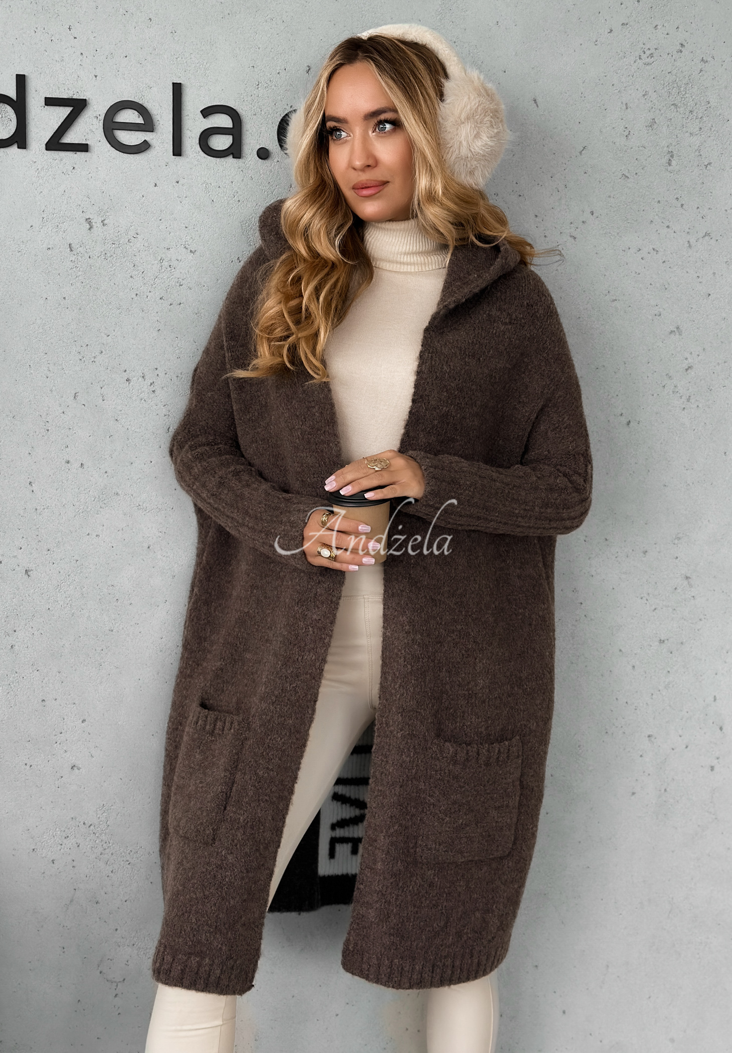 Dlhý kardigan s prímesou vlny je tou najlepšou voľbou na chladnejšie dni! Má kapucňu, vrecká, rukávy sú zakončené lemom. Na chrbte ho ozvláštnia nápisy, ktoré dodávajú celku jedinečný charakter. Tento oversize model určite sa stane číslom jedna v mnohých šatníkoch. Skvele doplní každodenný vzhľad a vyzerá naozaj módne. Produkt je dostupný v mnohých farbách.