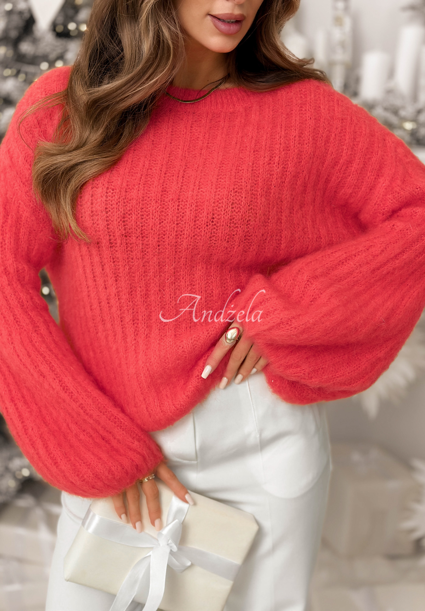 Mäkký sveter vyrobený z vysoko kvalitného mohéru so zmesou vlny. Má skrátený strih so zaobleným výstrihom. Jeho jedinečný dizajn je zvýraznený rukávmi, ktoré sú v hornej časti priliehavé a smerom dole rozšírené.