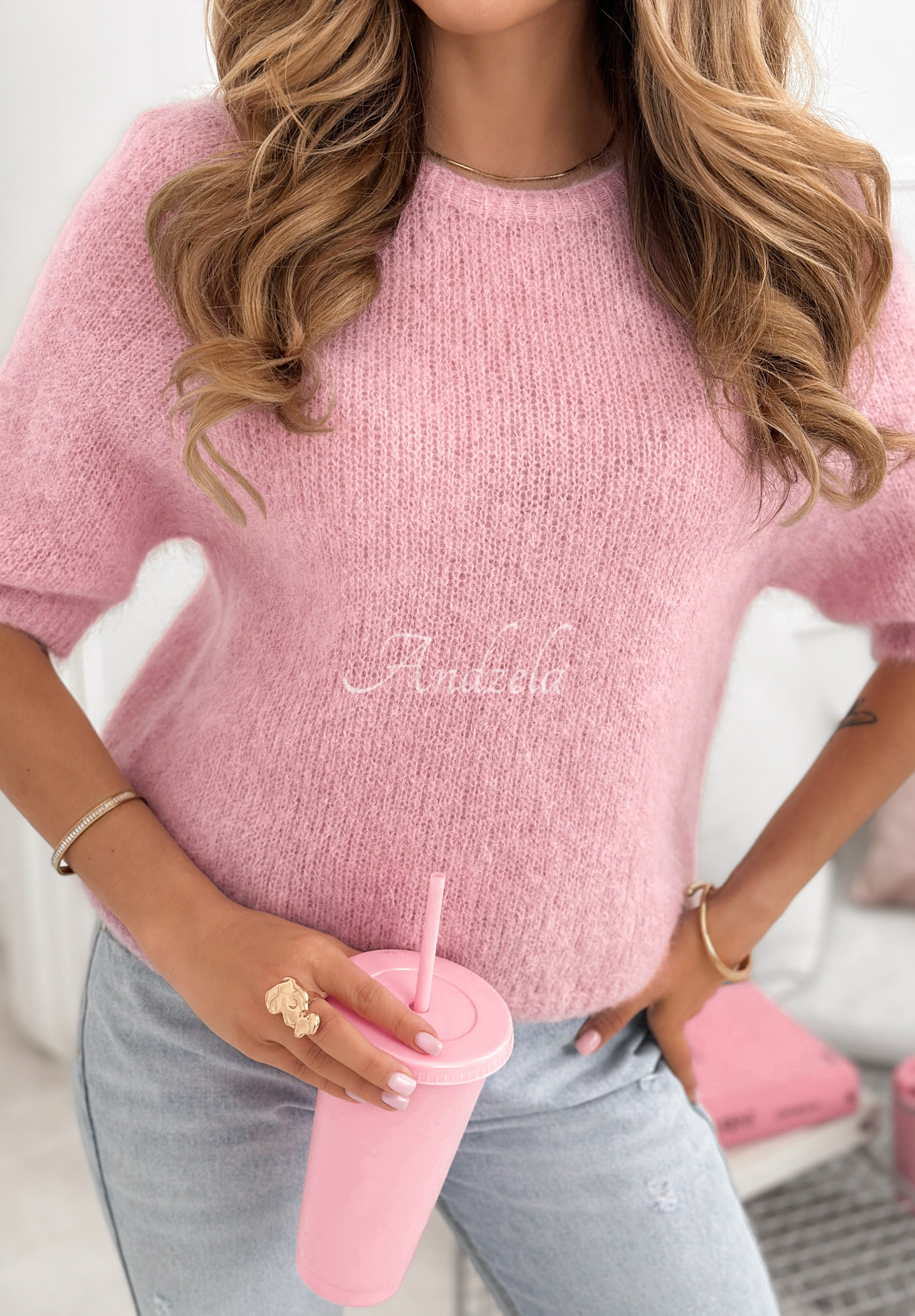 Mäkký mohérový sveter One More Hug púdrovo ružová