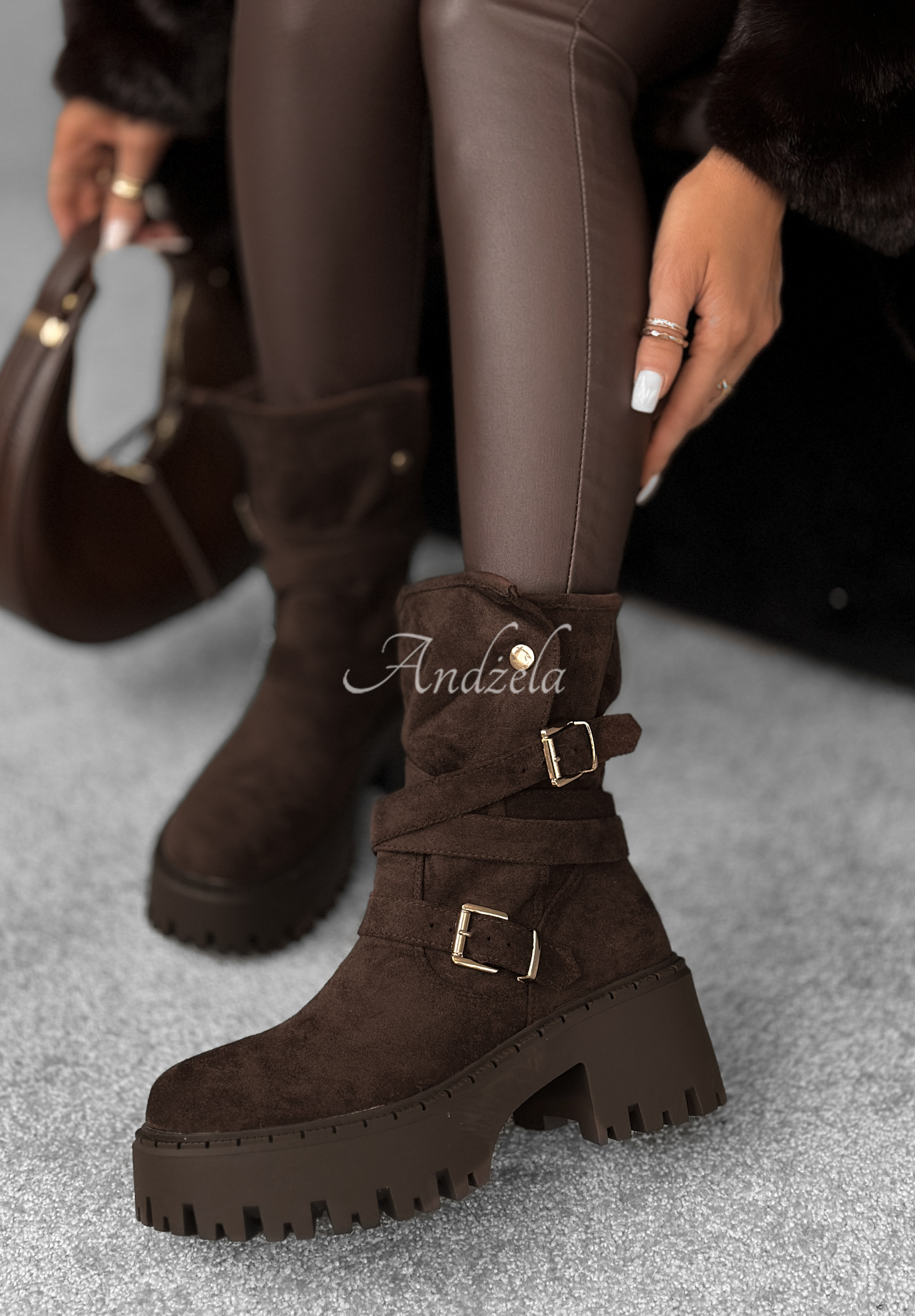 Semišové členkové čižmy s prackami Coldest Months čokoládové