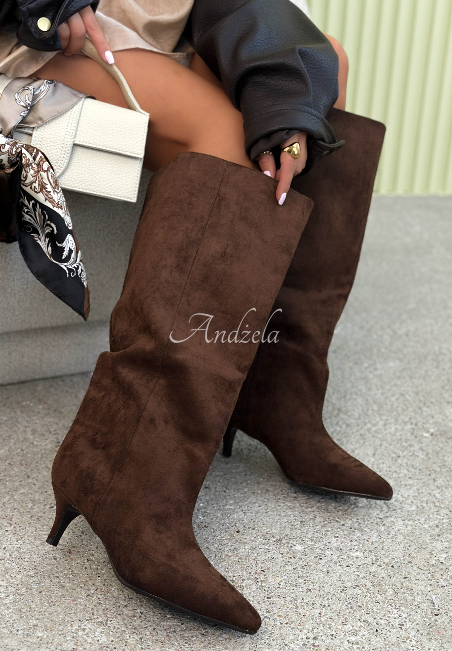 Semišové čižmy na tenkom opätku Better Without You čokoládové