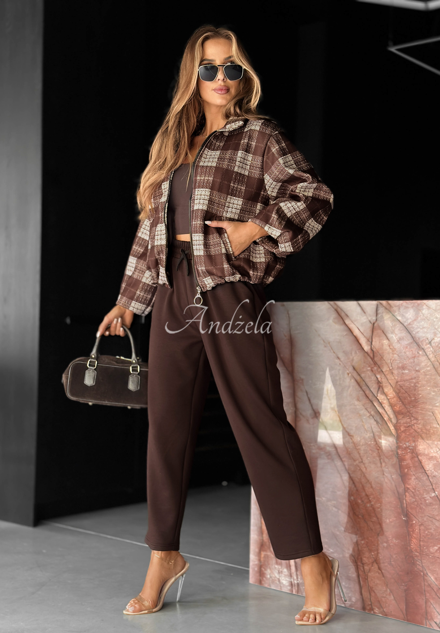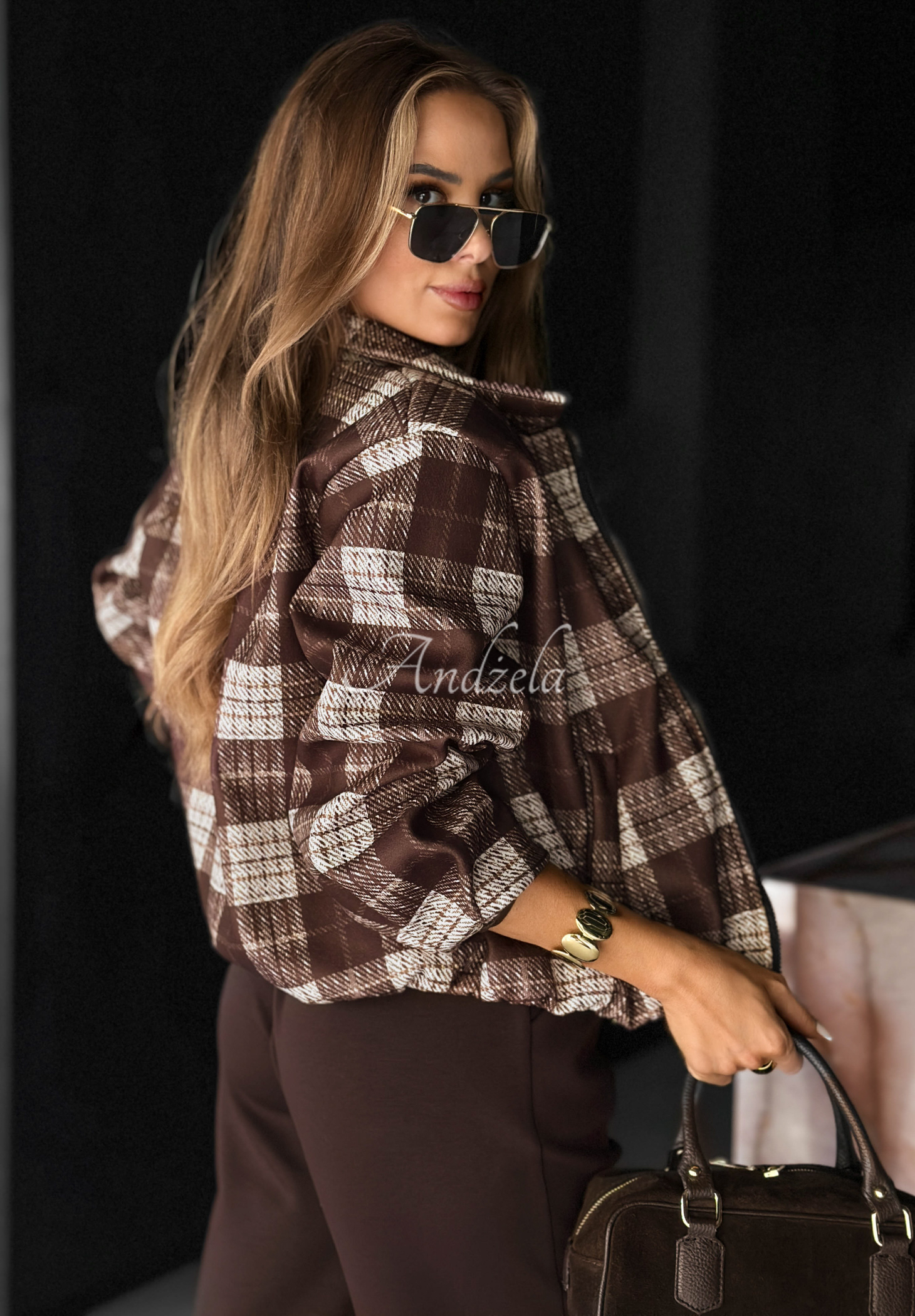 Krátka bunda bomberka károvaná Wildwood Crest čokoládová