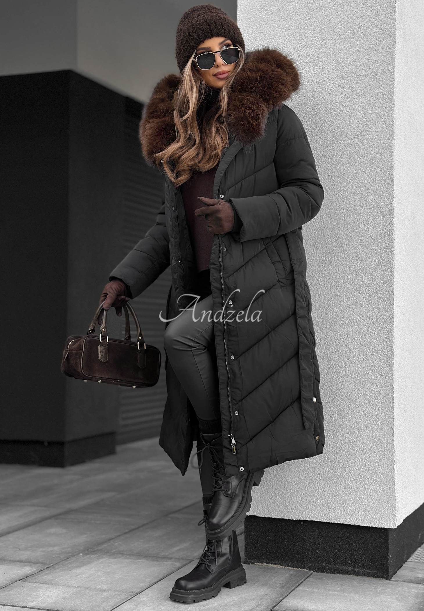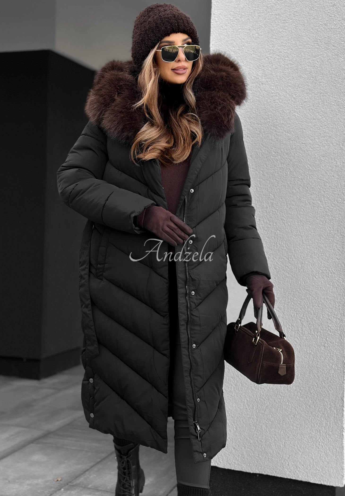 Dlhá prešívaná bunda s kožušinou Wintery Affection čierna