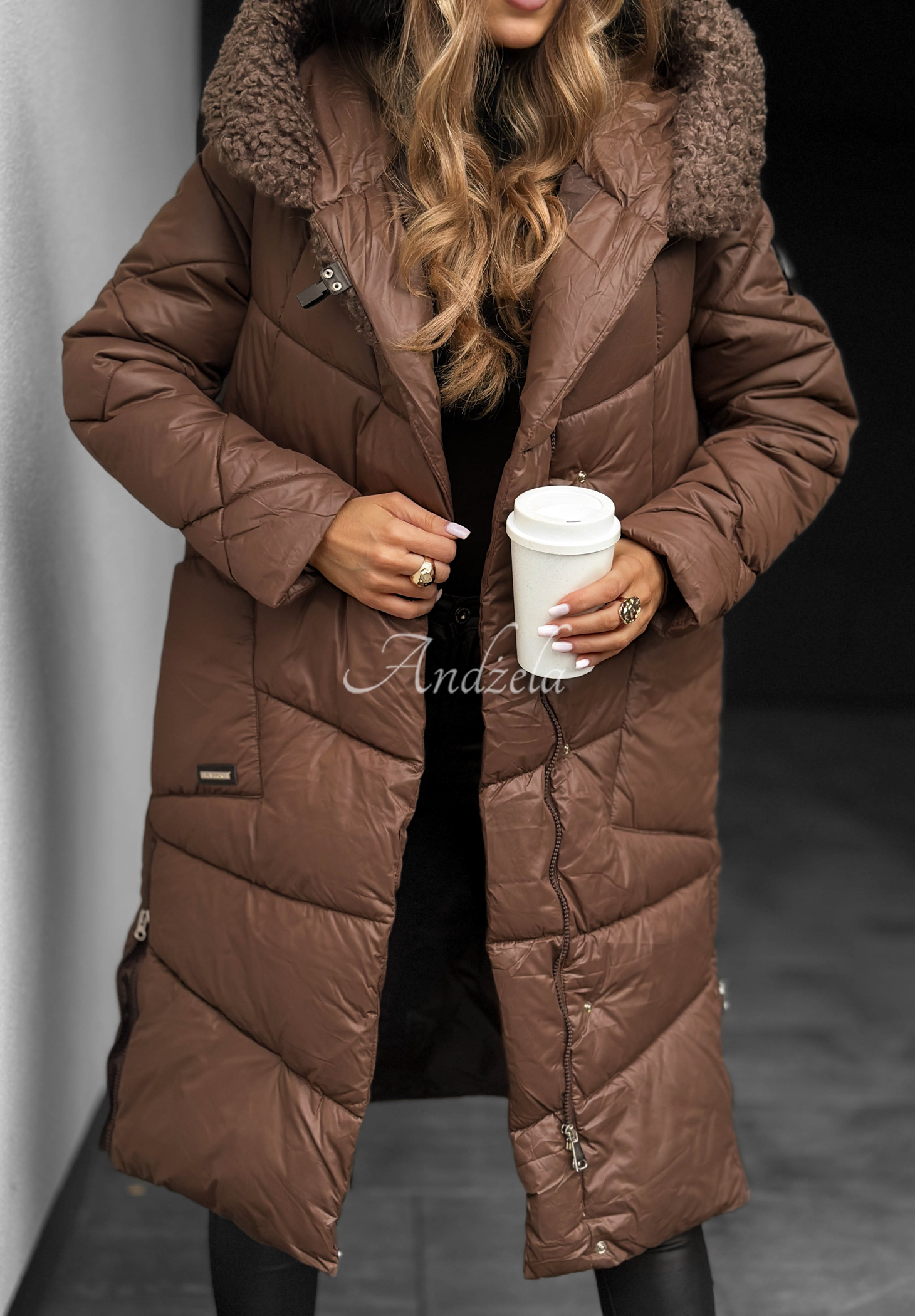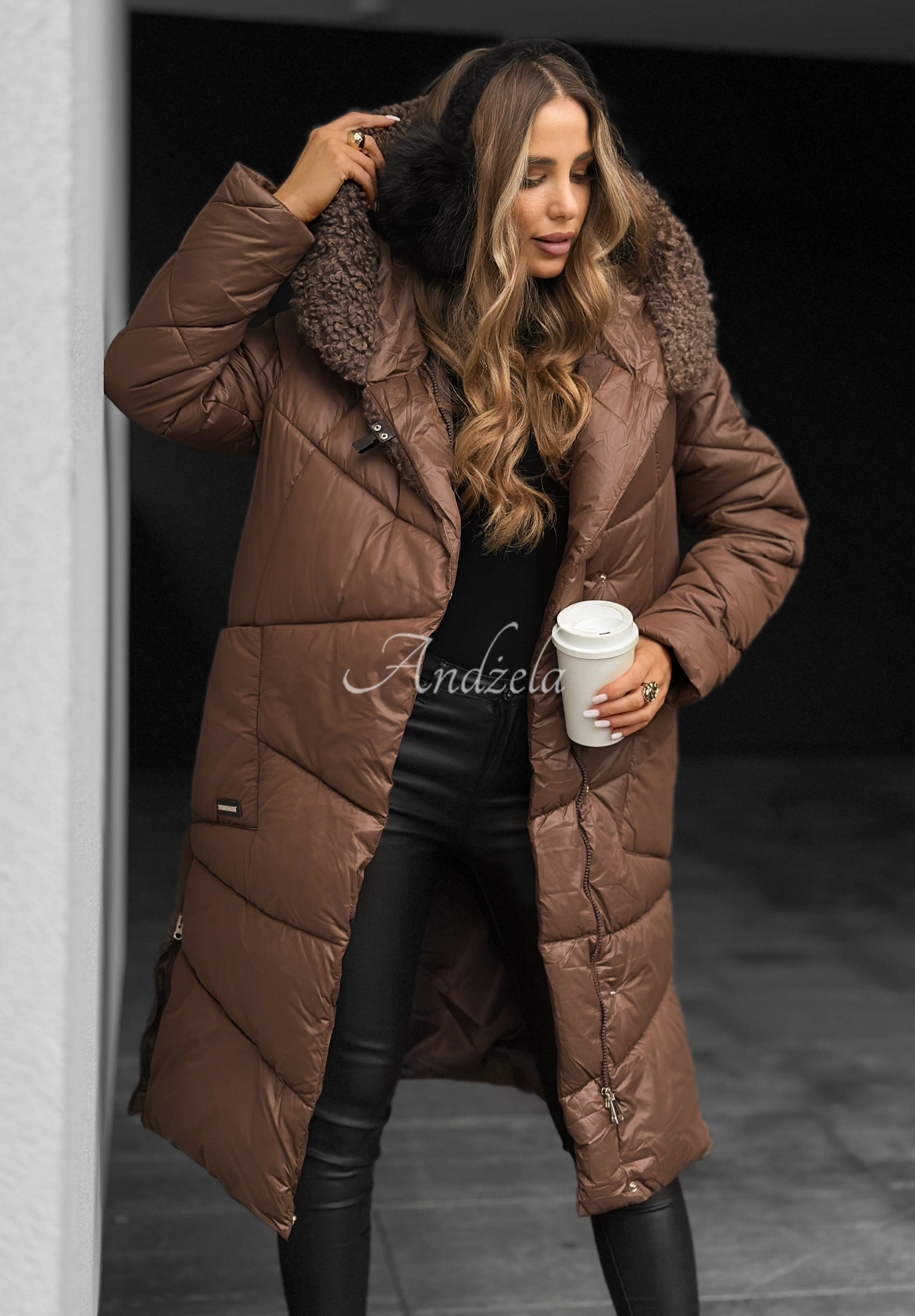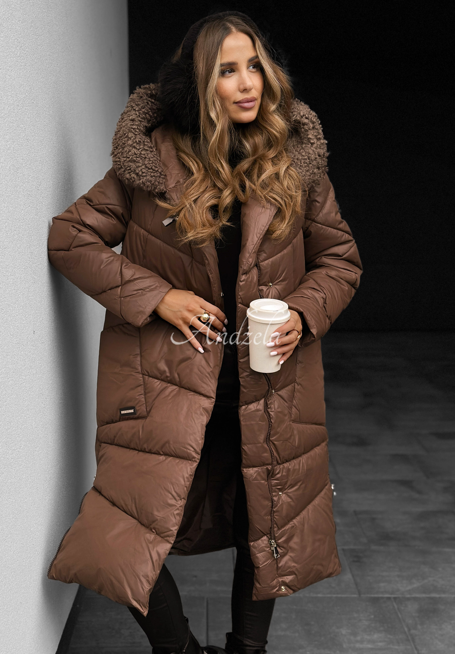Prešívaná bunda s kožušinou October Leaves čokoládová