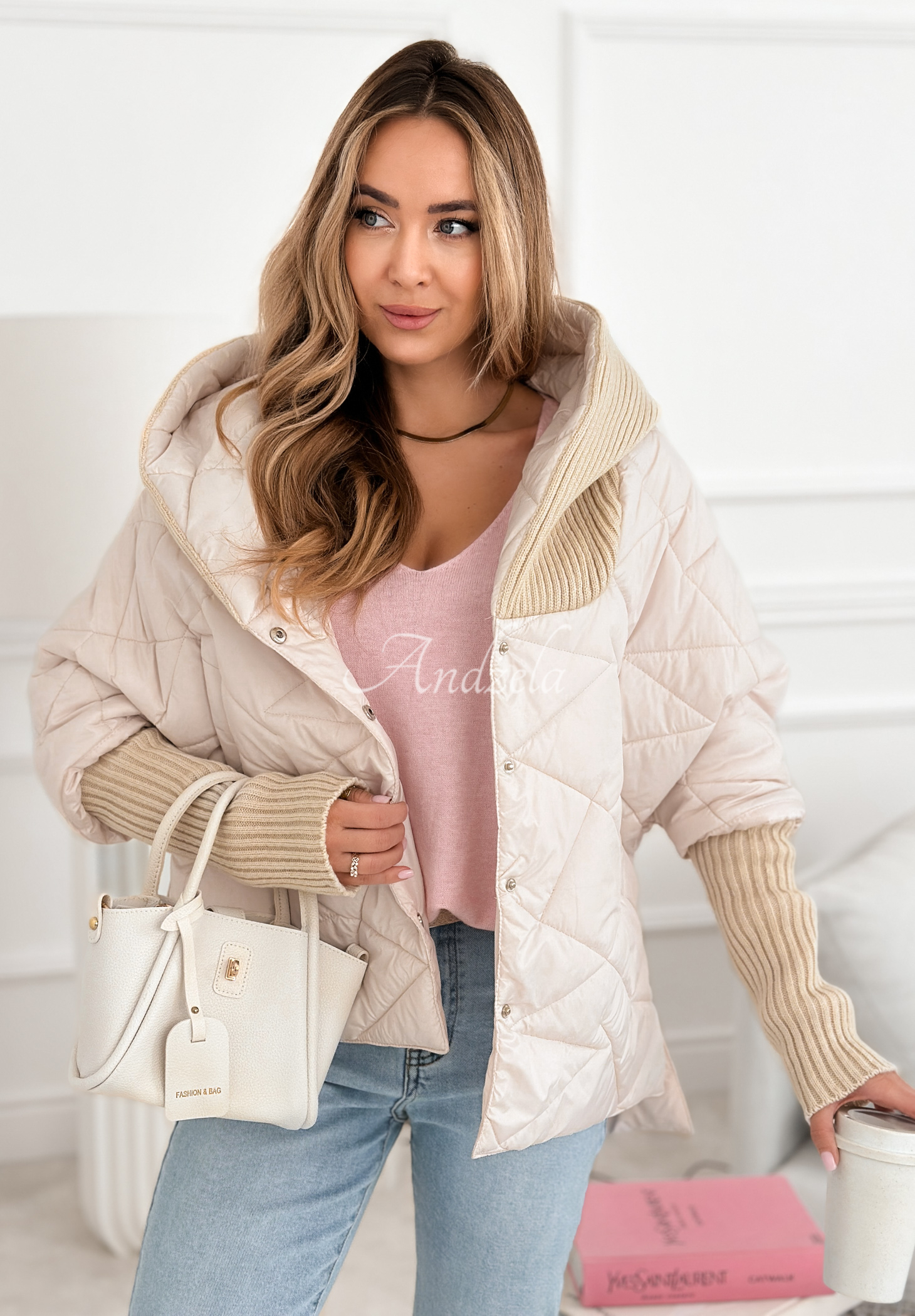 Bunda oversize s kapucňou Sancha svetlo béžový
